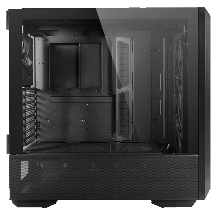 دو پنل کناری پایین، جریان هوای کافی را برای خنک کردن کارآمد GPU هنگامی که فن‌ها در بالای پوشش PSU نصب می‌شوند، فراهم می‌کنند.