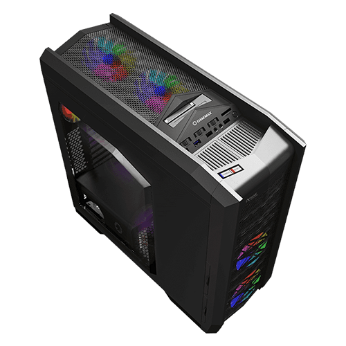 کیس گیمینگ GameMax Dragon Knight فول تاور ARGB با پنل جلویی با طرح کاملا مش که ورودی جریان هوای عالی را تضمین میکند. فضای بسیار زیادی دارد از تمامی مادربردهای پشتیبانی میکند ATX/MATX/ITX/E-ATX، پنل های جلو، بالا و پایین دارای فیلتر گرد و غبار میباشند و به تمیز ماندن سیستم کمک میکنند همچنین از کارت گرافیک تا طول 42 سانتی متر پشتیبانی میکند. این کیس دارای دو پورت USB2 و دو پورت USB3 میباشد و همچنین دارای جک هدفون و میکروفون نیز میباشد. تعداد اسلات های بسیار زیاد برای هارد های شما به راحتی 10 هارد HDD یا 8 هارد SSD نصب کنید. این کیس دارای کنترل فن 3 کاناله میباشد ، سرعت آهسته / استپ / زیاد و همینطور RGB فن ها نیز قابل کنترل هستند. به واسطه فضای بسیار زیاد میتوانید به راحتی کابل های خود را مرتب کنید و ظاهری شیک و تمیز درون کیس داشته باشید.