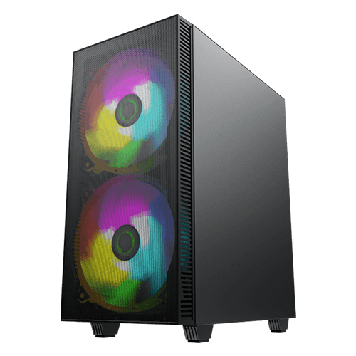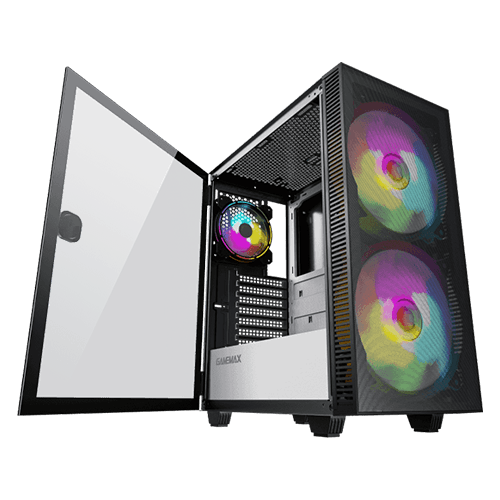 کیس گیمینگ گیم مکس Aero به شما جلوه ای زیبا توسط نوار RGB در پنل جلویی میدهد که توسط یک کنترلر قابل تغییر رنگ و حالت میباشد. بیش از 100 حالت نورپردازی برای انتخاب وجود دارد. کیس گیمینگ ایرو دارای دو فن 200 میلیمتری در پنل جلویی و یک فن 120 میلیمتری در پنل پشتی میباشد که دارای RGB هستند و خنک سازی عالی را تضمین میکنند. تمام این فن ها میتوانند به هاب موجود در کیس وصل شوند و این امکان را در اختیار شما میگذارد تا به راحتی حالت و رنگ فن ها را تغییر دهید و یا با قطعات دیگر مثل مادربردی که RGB دارد سازگار کنید (مادربردهایی از MSi/Asus/Gigabyte).