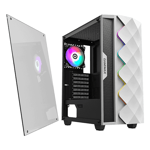 شرکت Gamemax مفتخر است که کیس بسیار قدرتمند و جدید Diamond COC که سال 2021 عرضه شده را معرفی کند. این کیس با طراحی بسیار زیبا و هوشمندانه در اختیار کاربران قرار داده شده است. کسانی که به دنبال بالاترین از سطح از کیس گیمینگ هستند اما بودجه نسبتاً کمی دارند، پیشنهاد میشود. پنل کاملاً شیشه ای سمت چپ کیس Diamond COC لولا دار است و به آسانی باز و بسته می شود. پنل جلویی با نوار RGB که تحت کنترل است، طرح الماسی جذابی به این پنل داده است. سیستم خنک کننده و اورکلاکینگ این کیس با استفاده از یک فن توربو بسیار پیشرفته میباشد و هوا را بصورت “T” شکل جریان میدهد. همچنین فنآوری خنک کننده مستقیم مادربرد، فشار باد مثبت را برای کمک به اتلاف گرمای مادربرد فراهم می کند.