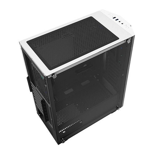 پنل سمت چپ این کیس لولا دار است و به راحتی باز و بسته می شود. طرح الماسی بریده بریده جذاب با استفاده از برآمدگی و برجستگی های دقیق، جلوه پنل جلو را عالی نشان میدهد. پنل جلویی دارای LED های ARGB است, که با دکمه هایی که روی پنل بالایی قرار داده شده است، میتوان مود RGB و روشنایی آن را کنترل کرد. دارای یک فن توربو 140 میلی متری COC که خنک سازی قطعات اصلی مادربرد را انجام میدهد و عملکردی بی نظیر را به ارمغان می آورد.