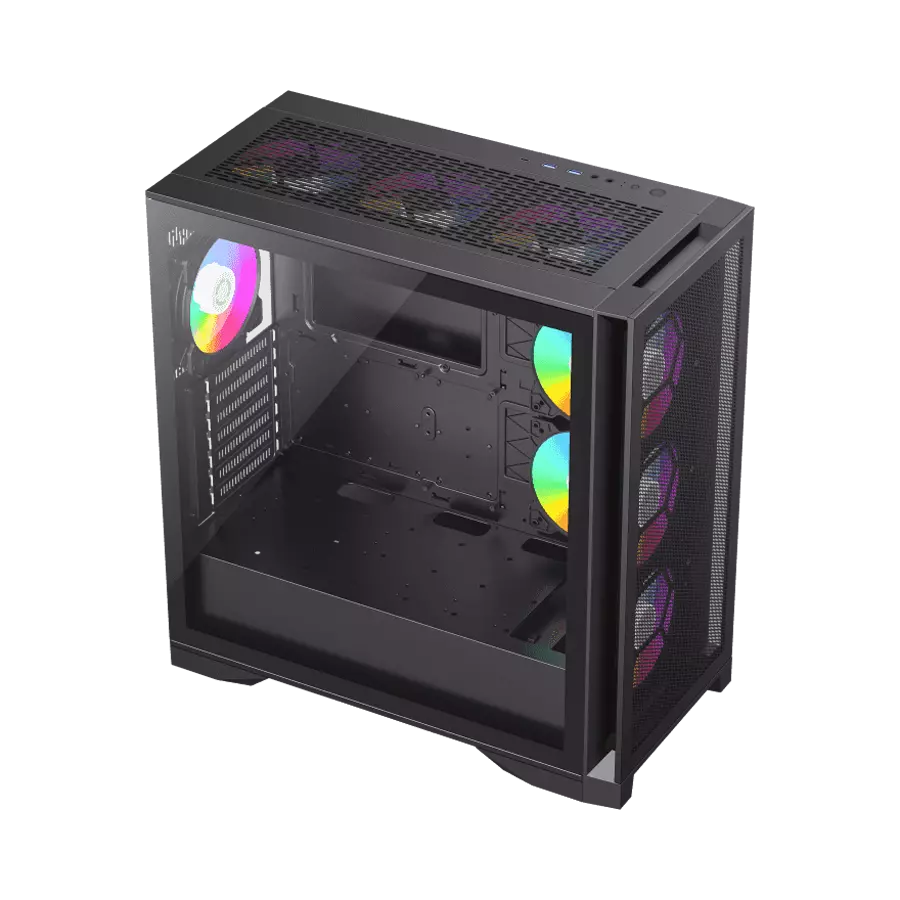پنل جلویی قابلیت نصب خنک کننده مایع تا سایز 420 و در بالا تا سایز 360 و درکل قابلیت نصب 9 فن در سایز 120 را جهت خنک کاری بهتر برای شما فراهم میکند.