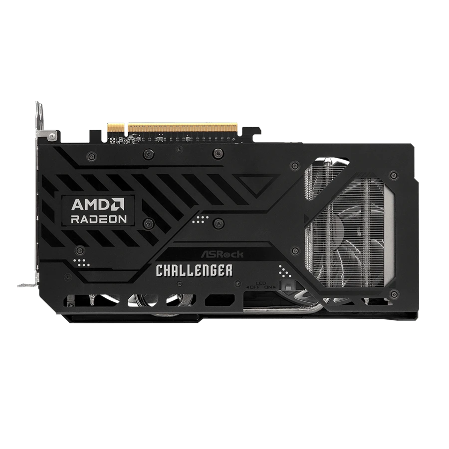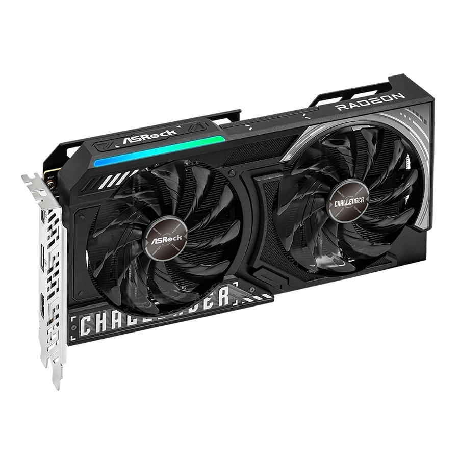 کارت گرافیک ازراک ASRock RX 9060 XT Challenger 16GB OC با طراحی دو فن و بک‌پلیت فلزی زیبا تولید شده است. بدنه فلزی باعث استحکام بیشتر و جلوگیری از خم شدن برد می‌شود و در عین حال با پدهای حرارتی حرفه‌ای، انتقال حرارت را بهبود می‌بخشد. طراحی خطوطی و زاویه‌دار فن‌ها ظاهری مدرن و قدرتمند به کارت می‌دهد و ترکیب آن با چراغ‌های LED جلوه‌ای خاص ایجاد می‌کند. این طراحی علاوه بر زیبایی، توازن بی‌نظیری میان عملکرد خنک‌کننده و سکوت در زمان کار فراهم کرده است.