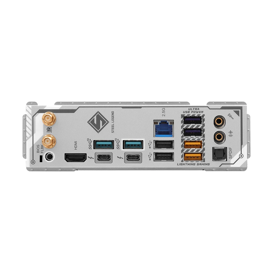 دو پورت Thunderbolt 4 / USB4 در پشت مادربرد امکان انتقال داده بسیار سریع و اتصال نمایشگرهای 8K را فراهم میکنند. وجود LAN 2.5G و Wi-Fi 7 استاندارد جدید شبکههای بیسیم را به سیستم اضافه کرده و تاخیر را به حداقل میرساند. همچنین تعداد زیادی پورت USB نسلهای مختلف نیاز دستگاههای جانبی را کاملاً پوشش میدهد.