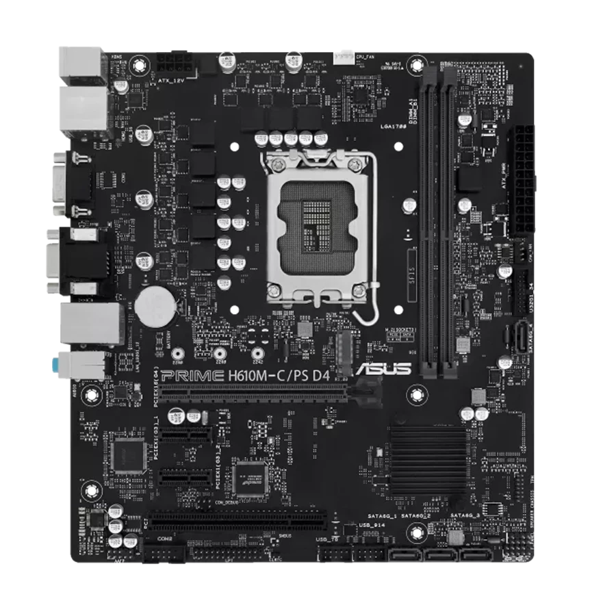 مادربرد ایسوس PRIME H610M-C/PS D4 با سوکت Intel® Socket LGA1700، برای پشتیبانی از پردازندههای Intel® Core™ نسل ۱۴، ۱۳ و ۱۲، Pentium® Gold و Celeron® طراحی شده است. این مادربرد با استفاده از چیپست Intel® H610، از فناوری Intel® Turbo Boost 2.0 و Intel® Turbo Boost Max 3.0 پشتیبانی میکند.