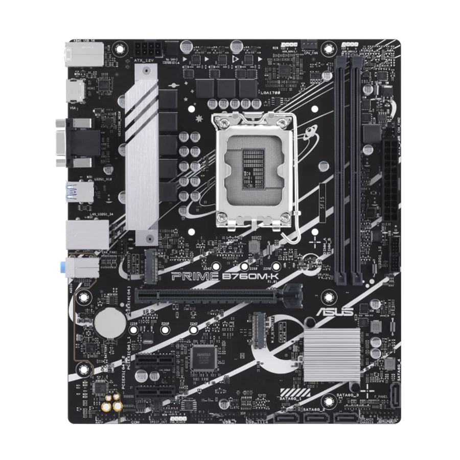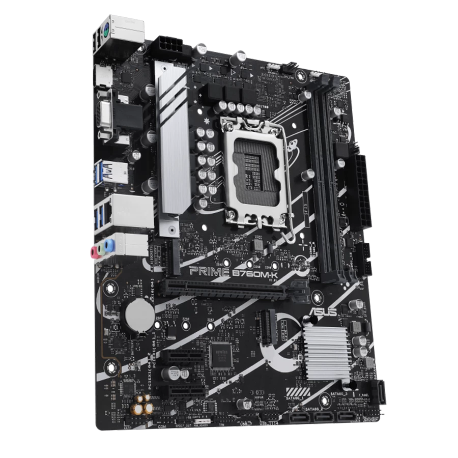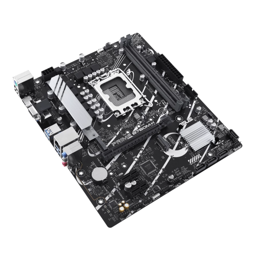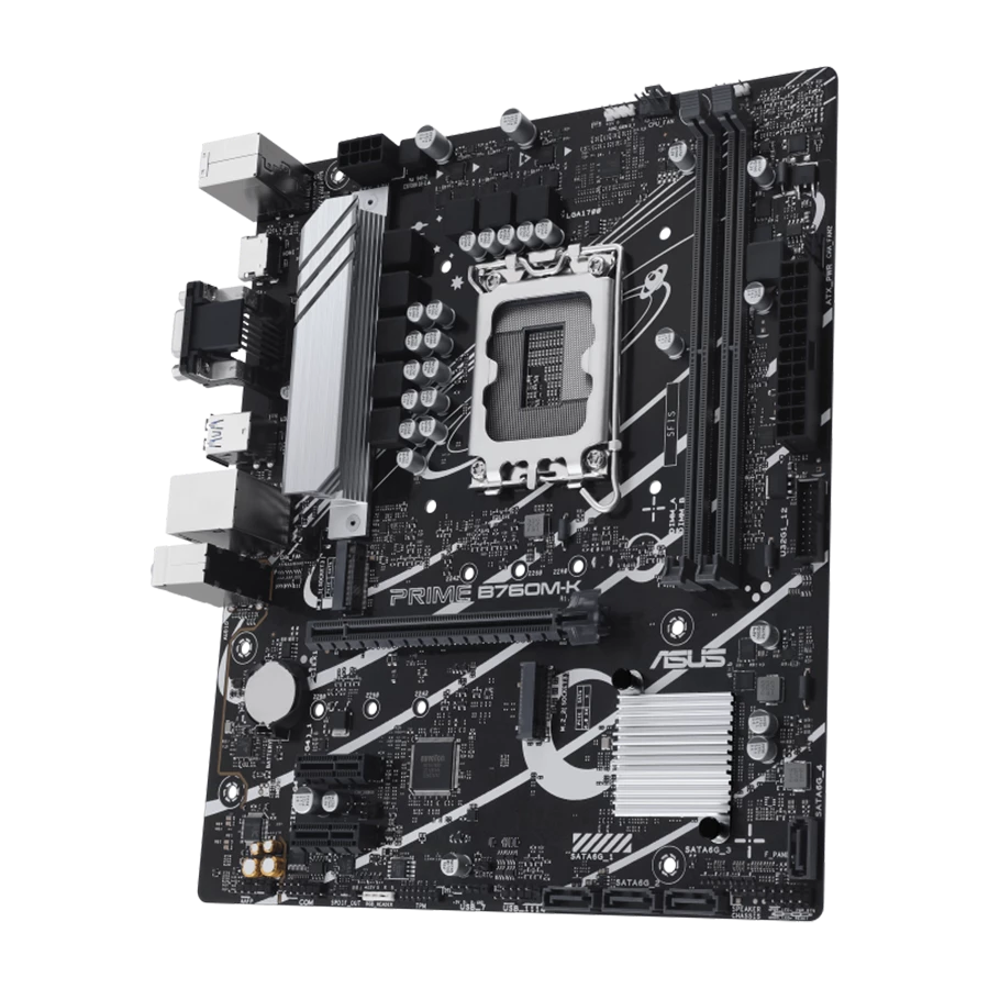 مادربرد ایسوس PRIME B760M-K D5 برای خروجی تصویر دارای یک پورت VGA و یک پورت HDMI میباشد .که پشتیبانی از رزولوشن 4K@60Hz را فراهم میکند. همچنین این مادربرد مجهز به یک اسلات PCIe 4.0 x16 برای پردازندههای Intel® Core™ (نسل ۱۴، ۱۳ و ۱۲) و دو اسلات PCIe 4.0 x1 با چیپست Intel® B760 است. که امکان اتصال کارتهای توسعه متنوع را فراهم میکند.