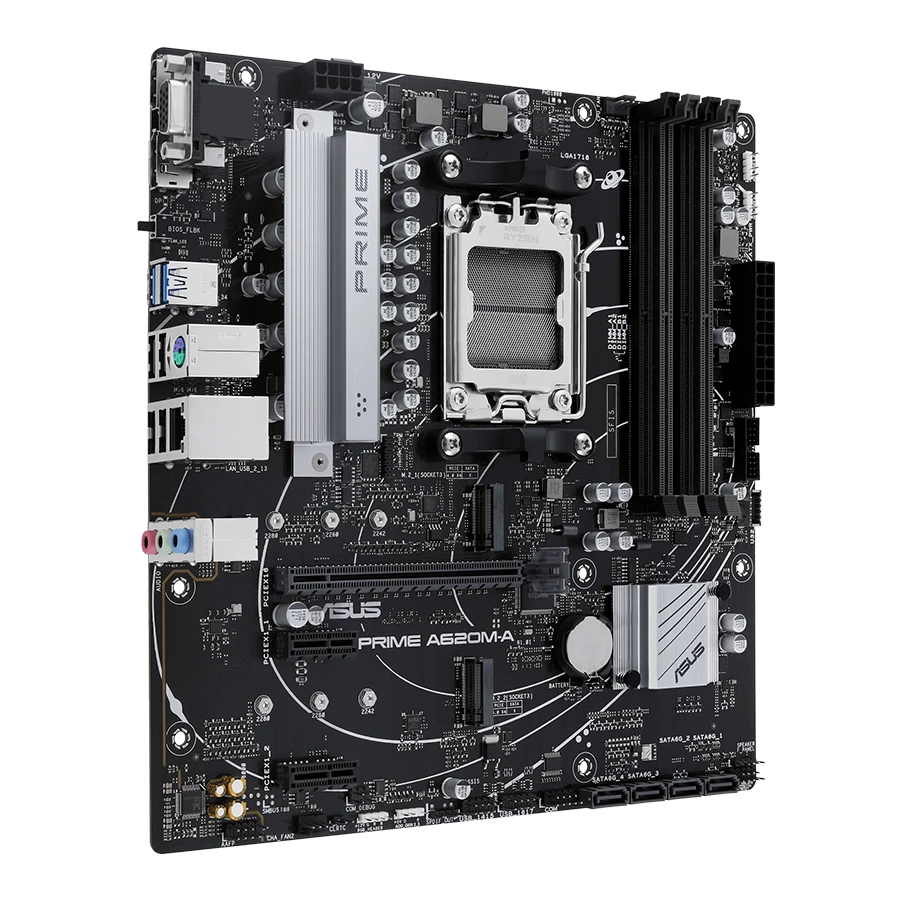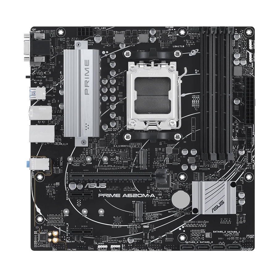 مادربرد ایسوس ASUS PRIME A620M-A-CSM یکی از محصولات جدید ایسوس است که برای بهرهوری از پردازندههای AMD Ryzen طراحی شده است. این مادربرد از سوکت AM5 پشتیبانی میکند که سازگار با پردازندههای سری 7000، 8000 و 9000 رایزن AMD است. این سازگاری امکان استفاده از جدیدترین پردازندهها را فراهم کرده و کارایی بالایی را در اجرای برنامههای سنگین و بازیهای حرفهای تضمین میکند.