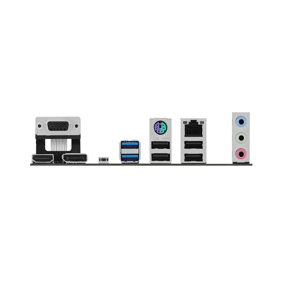 این مادربرد دارای پورتهای HDMI، DisplayPort و VGA برای اتصال نمایشگرهای مختلف است. همچنین، کدک صوتی Realtek 7.1 صدای باکیفیت و پشتیبانی از صدای فراگیر را ارائه میدهد. این ویژگیها تجربهی صوتی و تصویری بینقصی را برای کاربران به ارمغان میآورد.