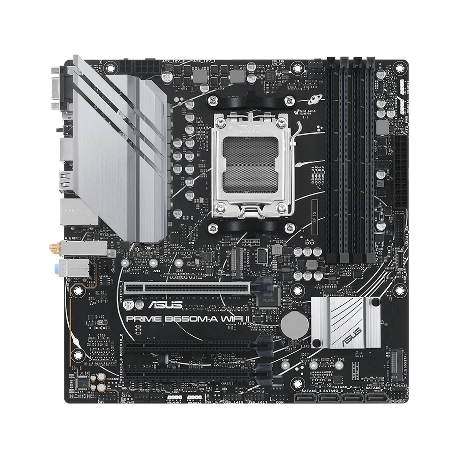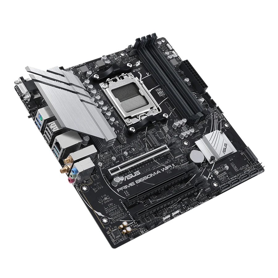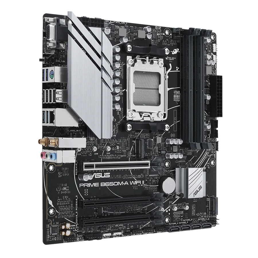 مادربرد ایسوس ASUS PRIME B650M-A WIFI II یکی از محصولات حرفهای سری PRIME است. که با امکانات پیشرفته و طراحی بهینه، کاربران را برای استفاده در کاربردهای هوش مصنوعی و پردازشهای سنگین آماده میکند. این مادربرد برای پردازندههای AMD Ryzen سری 7000، 8000 و 9000 طراحی شده و امکانات متنوعی را در اختیار کاربران قرار میدهد.