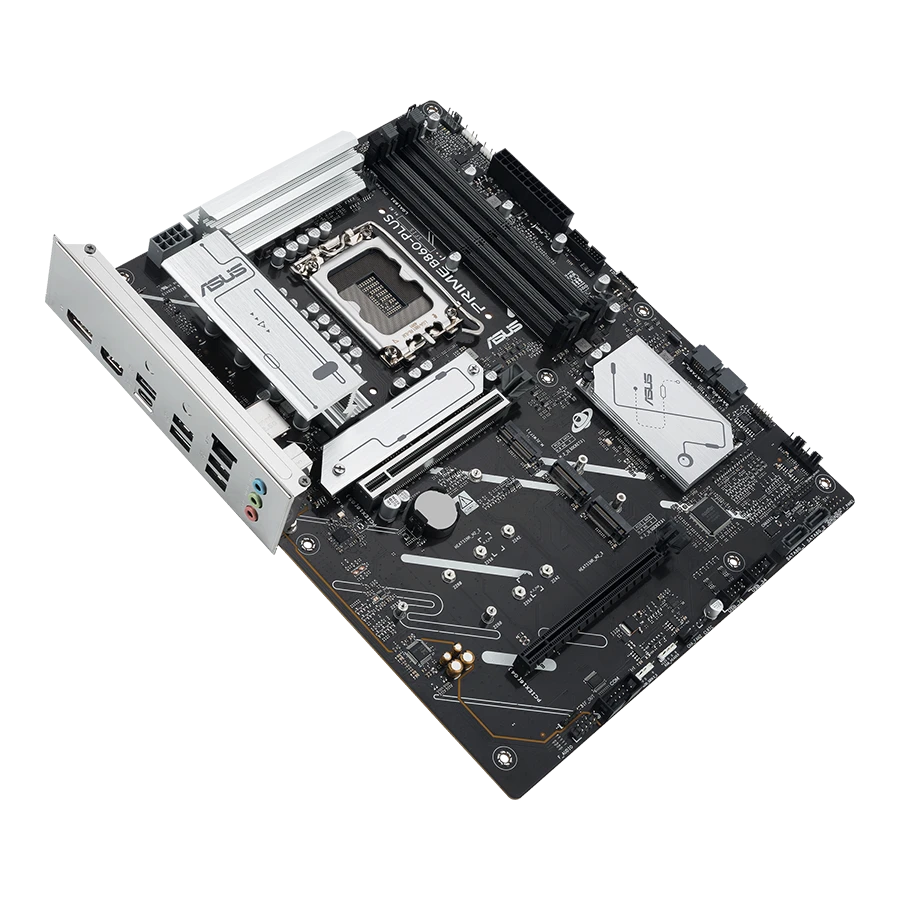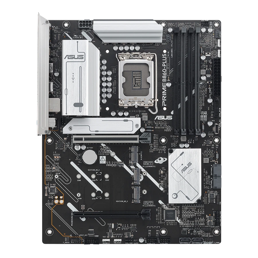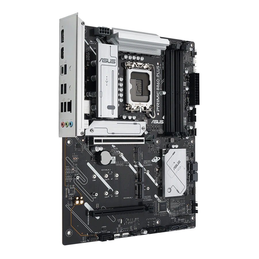 مادربرد PRIME B860 PLUS دارای اسلات PCIe 5.0 x16 است که برای کارتهای گرافیک جدید طراحی شده است. این قابلیت، پهنای باند بالاتری را برای پردازشهای گرافیکی سنگین و بازیهای نسل جدید فراهم میکند. همچنین دو اسلات PCIe 4.0 اضافی نیز برای توسعه بیشتر در دسترس است.