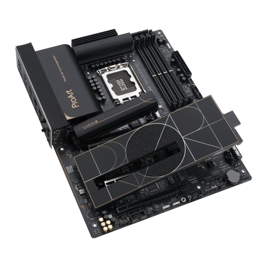 ASUS ProArt Z890-CREATOR WIFI دارای سیستم خنک‌کنندگی پیشرفته و فناوری‌هایی مانند Q-Release برای اسلات‌های PCIe و M.2 است. این سیستم‌ها امکان نصب و ارتقاء قطعات را به سادگی فراهم می‌کنند و با فناوری‌های پیشرفته خنک‌کننده، از داغ شدن بیش از حد قطعات جلوگیری می‌کنند. کاربران می‌توانند بدون نگرانی از پیچیدگی، قطعات خود را به راحتی نصب و تعویض کنند.