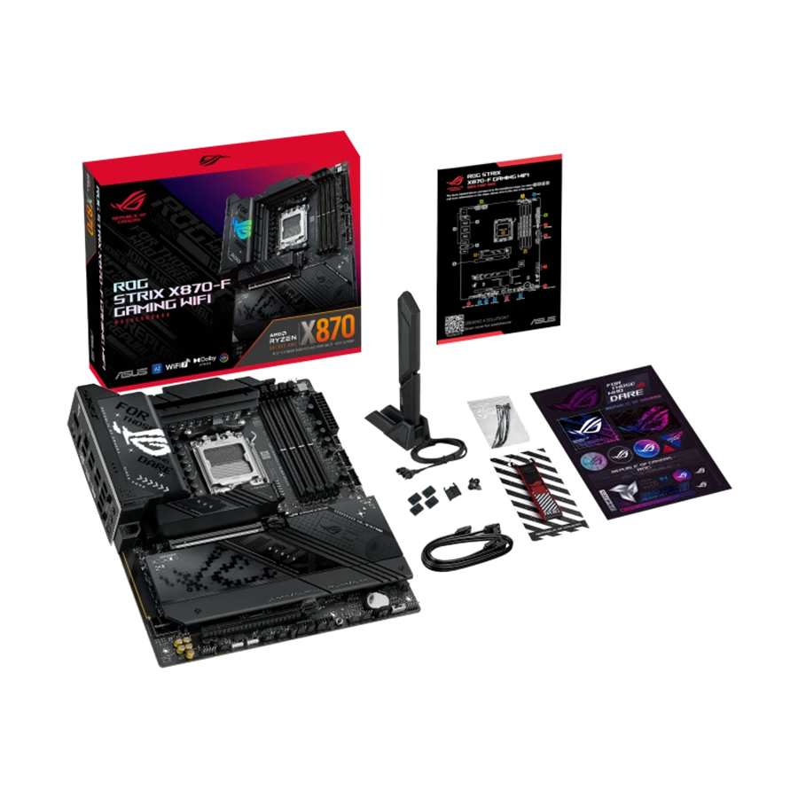 مادربرد ایسوس ASUS ROG STRIX X870-F GAMING WIFI یکی از محصولات ردهبالای ایسوس برای گیمرها و کاربران حرفهای است. طراحی آن بر پایه چیپست AMD X870 و سوکت AM5 انجام شده که از پردازندههای Ryzen سری 9000، 8000 و 7000 پشتیبانی میکند. ساختار مستحکم، هیتسینکهای بزرگ و طراحی زیبای RGB Aura Sync ظاهری جذاب و عملکردی پایدار را همزمان ارائه میدهد.