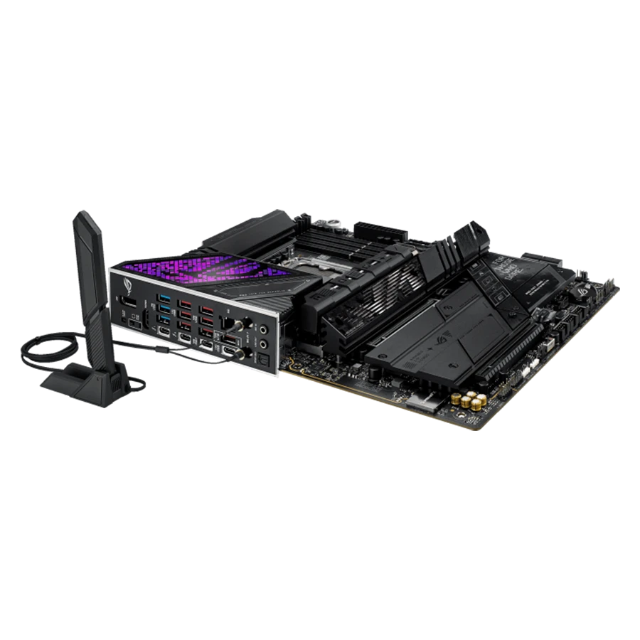 یکی از ویژگیهای مهم مادربرد ASUS ROG STRIX Z890-E ، پشتیبانی از Wi-Fi 6E است. این نسخه از وایفای با پهنای باند بیشتر و تاخیر کمتر، تجربه بهتری از اتصال به اینترنت را برای کاربران فراهم میکند. علاوه بر این، مادربرد از پورتهای USB 3.2 Gen 2 و Thunderbolt 4 پشتیبانی میکند. که سرعت انتقال دادهها را به شکل چشمگیری افزایش میدهند.