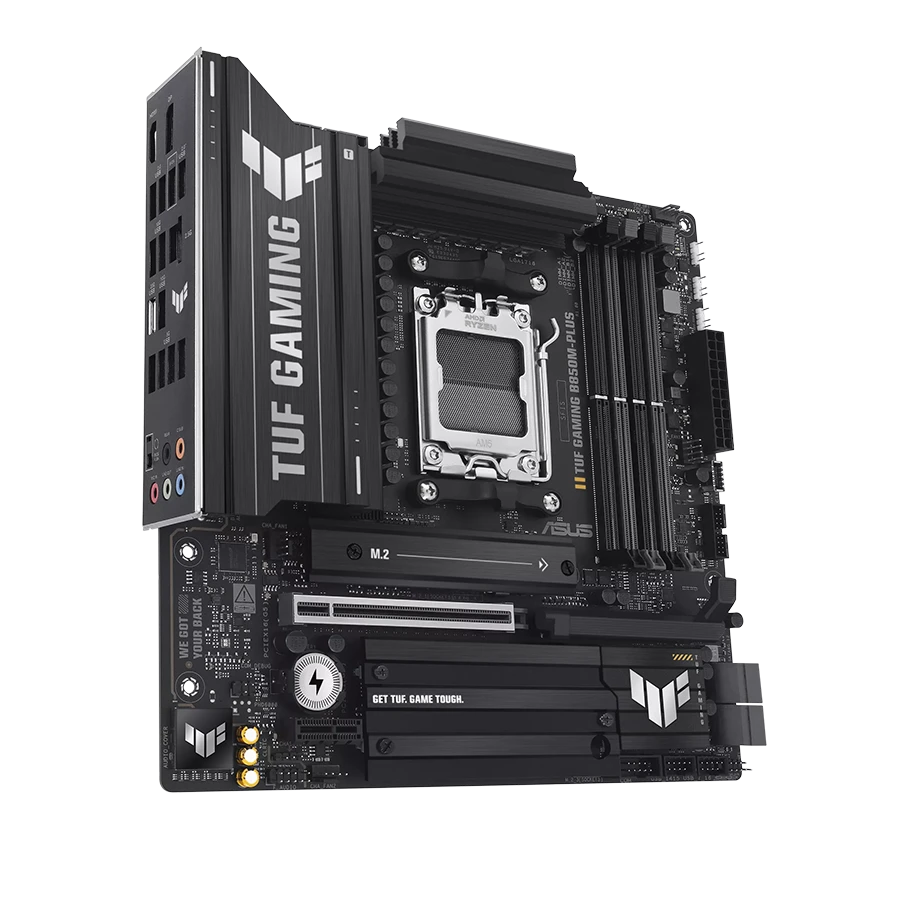 مادربرد ایسوس ASUS TUF GAMING B850M-PLUS با الهام از طراحی نظامی، مقاومت فوق‌العاده‌ای در برابر حرارت و فشار ارائه می‌دهد. این مادربرد با استفاده از قطعات درجه‌یک نظامی و برد چندلایه، دوام طولانی‌مدت را تضمین می‌کند. ساختار محکم آن باعث ثبات بیشتر در عملکرد سیستم در بازی‌های طولانی‌مدت می‌شود. استفاده از محافظ‌های فلزی و پشت‌صفحه فولادی، ایمنی بیشتری برای اتصالات فراهم کرده است.