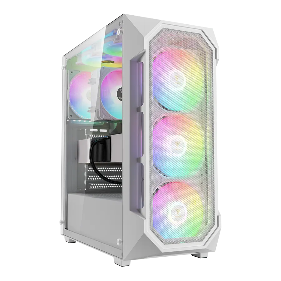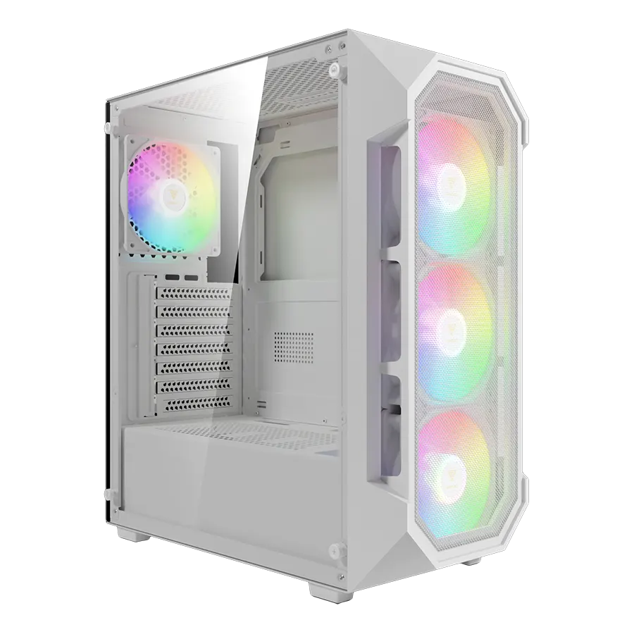 کیس گیم دیاس Gamdias AURA GC1 ELITE WH یک Mid-Tower مدرن و کارآمد از برند گیمدیاس است که با ترکیب طراحی ساده و شیک، پنل جلویی مش و نورپردازی خیرهکننده ARGB، جلوهای چشمگیر به سیستم شما میبخشد. وجود پنل کناری شیشهای امکان نمایش کامل قطعات داخلی را فراهم میکند و سیستم گردش هوای بهینه آن، دمای قطعات را در سطح ایدهآل حفظ مینماید. ساختار داخلی این کیس بهگونهای طراحی شده که علاوه بر کارایی بالا، چیدمانی منظم و ظاهری حرفهای ارائه دهد.