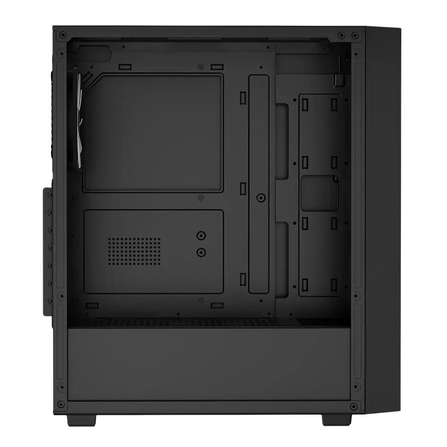 شیشه تمپرِ کناری نمایی باز و یکپارچه از داخل فراهم می‌کند تا چینش قطعات و نورپردازی دیده شود؛ ماهیت «Perforated ARGB Mid-Tower Case» در کنار این پنل، ترکیب عملکرد و زیبایی را هدف می‌گیرد.