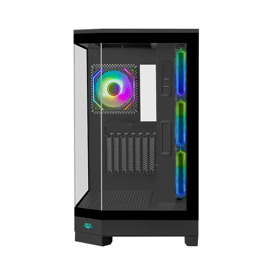 کیس گیمینگ اوست Awest GT-AQ1-MB با بهرهگیری از طراحی مدرن و ساختار ماژولار، تجربهای متفاوت برای کاربران حرفهای فراهم میکند. پنلهای شیشهای حرارتدیده در بخش جلو و کناره، دیدی گسترده و جذاب از قطعات داخلی ارائه میدهند و باعث ایجاد ظاهری چشمنواز و امروزی میشوند. استفاده از استیل ضدزنگ با ضخامت فوقالعاده یک میلیمتر، استحکام بدنه را در سطح بسیار بالایی نگه میدارد و امکان نصب تجهیزات سنگین و حرفهای را بدون نگرانی فراهم میسازد. این طراحی هوشمندانه موجب شده است تا کیس در عین زیبایی، عملکردی پایدار و طولانیمدت ارائه دهد.