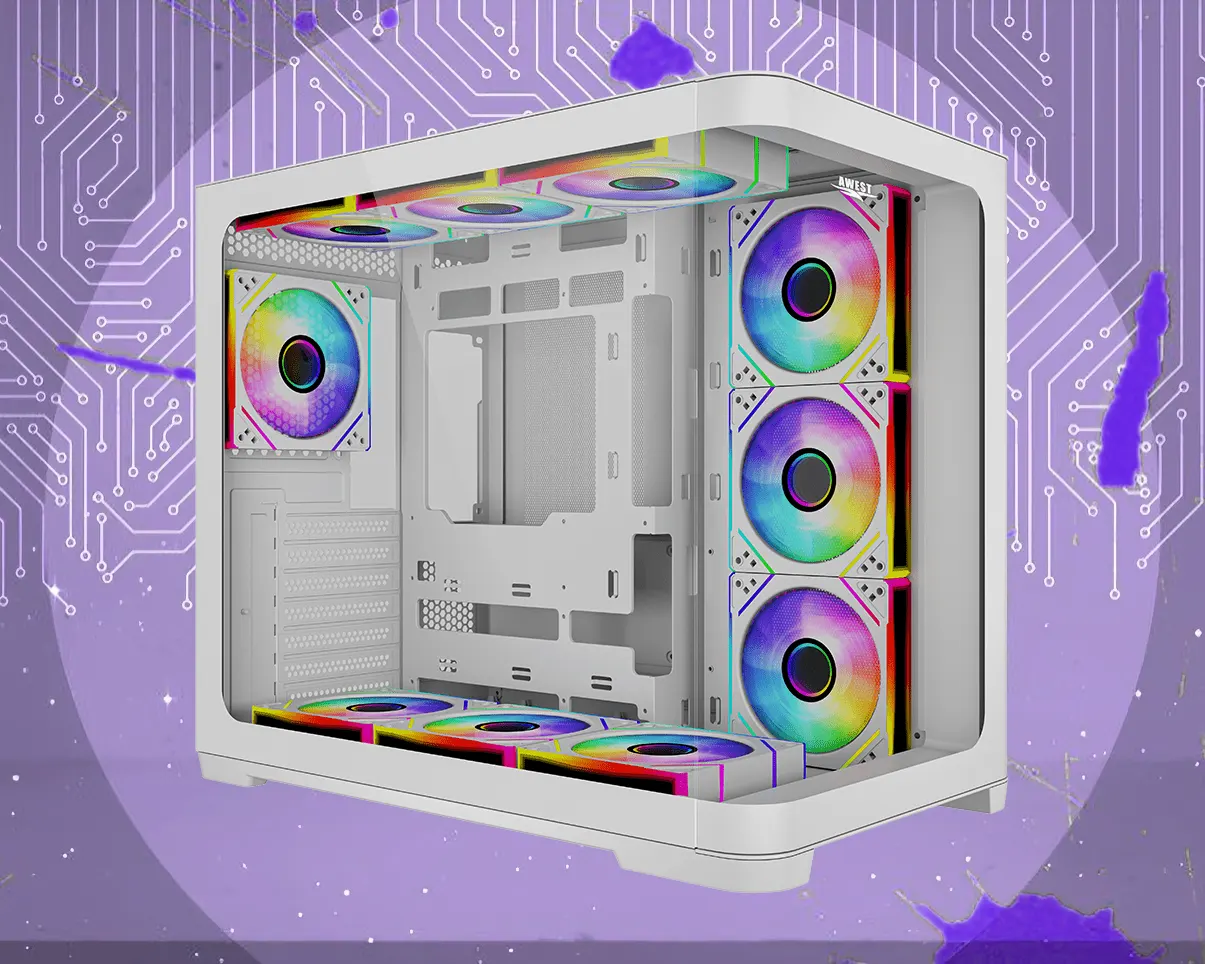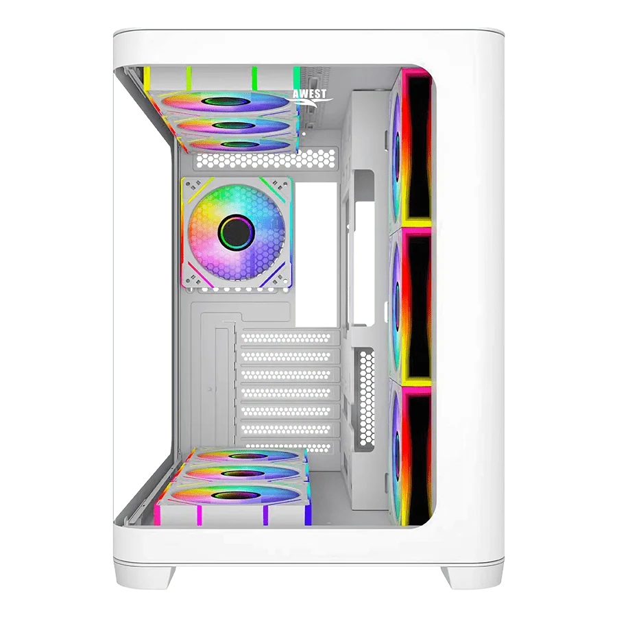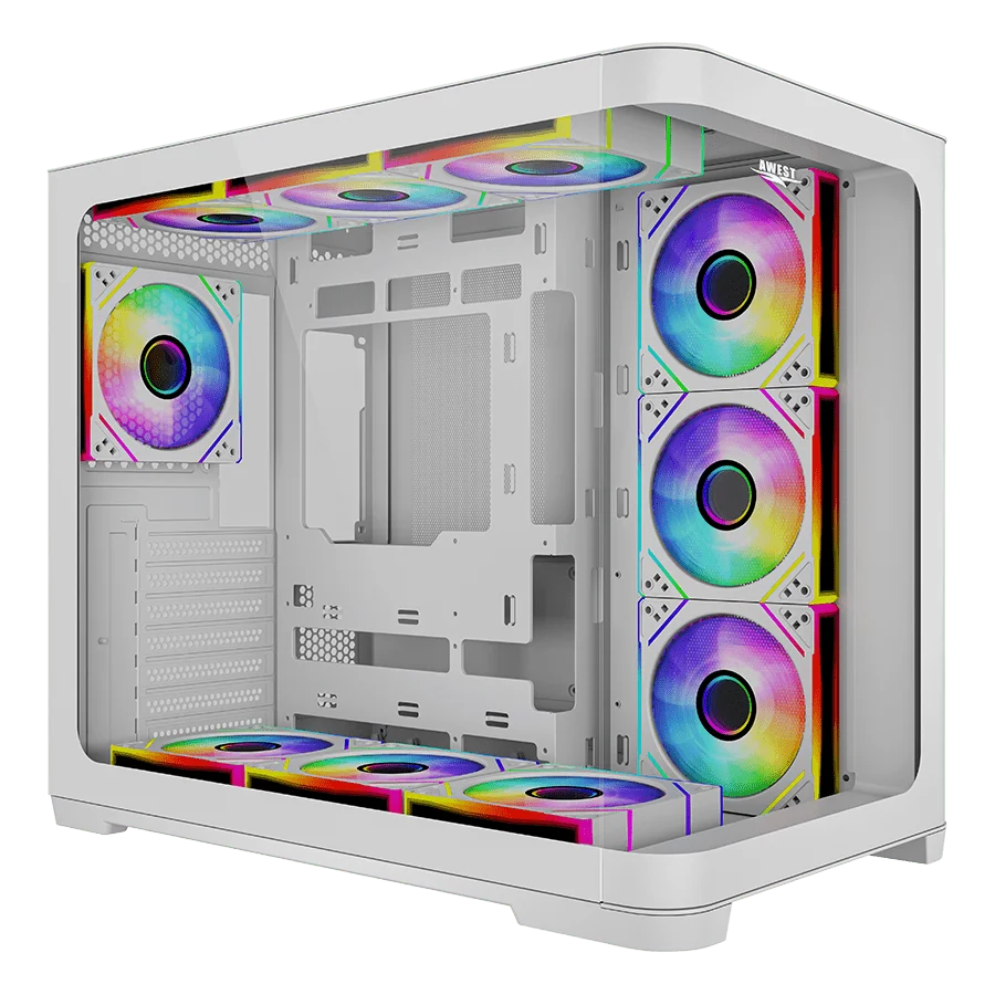 کیس گیمینگ اوست AWEST GT-AQ18-MW یکی از محصولات خاص برند اوست با طراحی مدرن است که با ترکیبی از اجزای مشبک و پانورامیک برای کاربرانی که به نورپردازی، تهویه و امکانات مدرن اهمیت میدهند ارائه میدهد. پنل جانبی به طور کامل شیشهای است و نمایی زیبا را فراهم میکند.