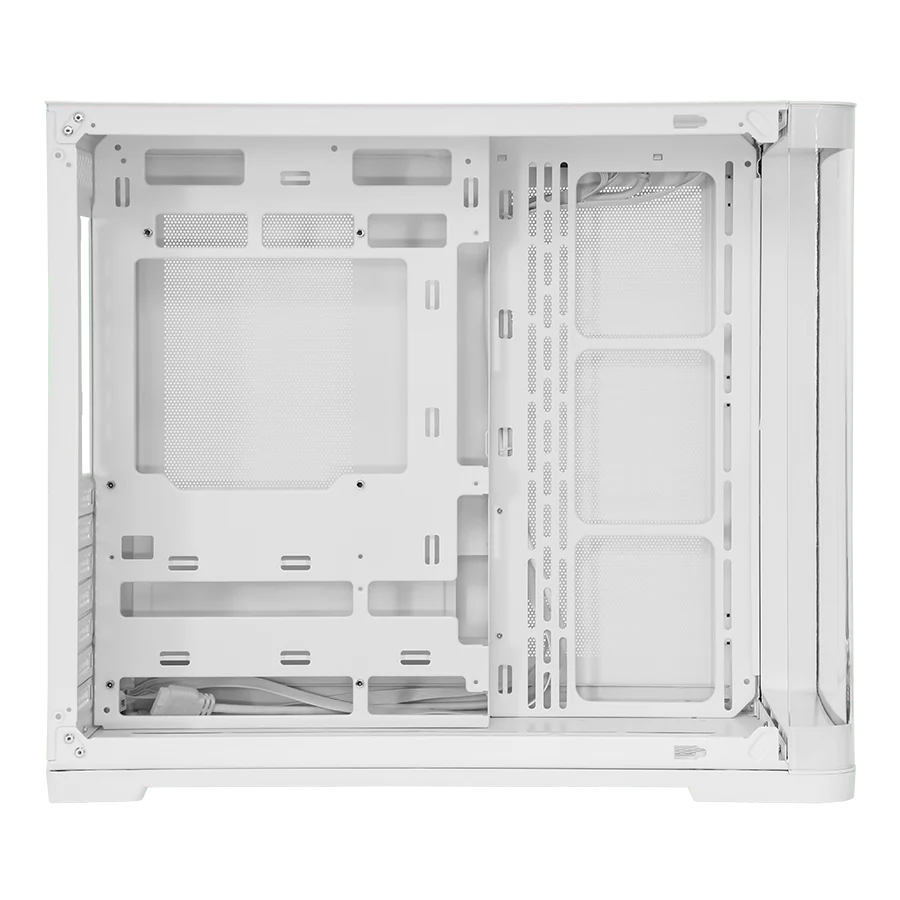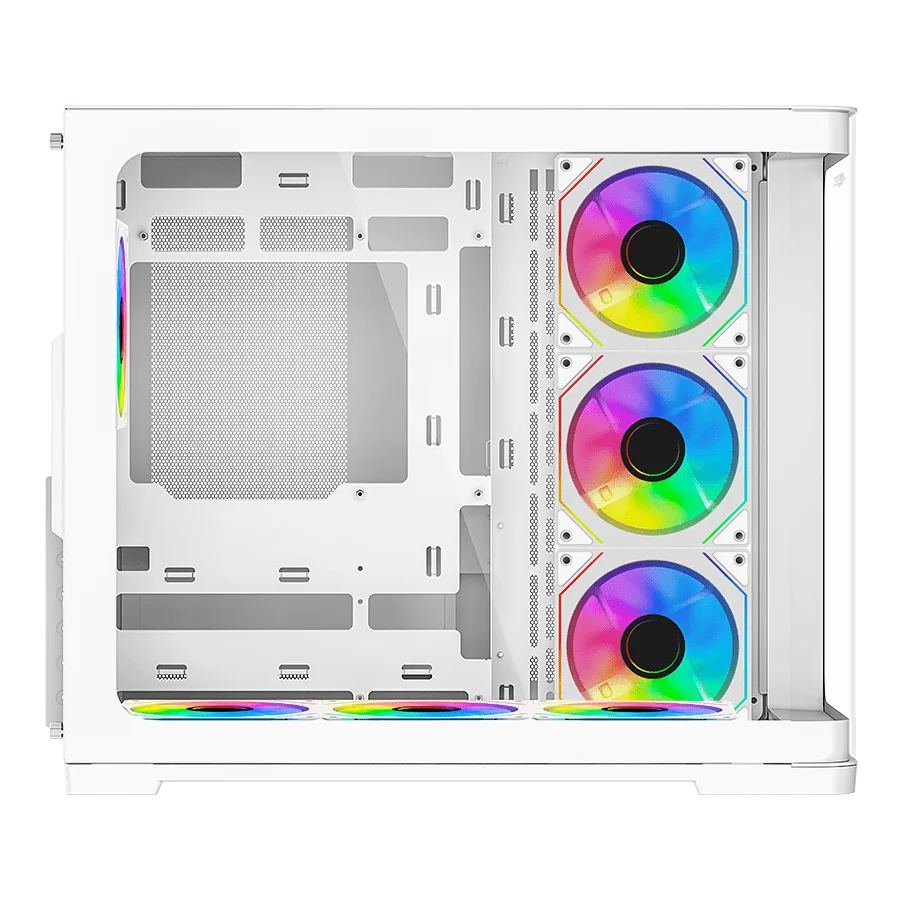 AWEST GT-AQ18-MW با پنل جانبی Tempered Glass نمایی ویترینی از قطعات داخلی فراهم میکند. حذف ستون میانی داخل کیس، دید داخلی را گستردهتر کرده و امکان نمایش نورپردازی ARGB بدون مانع فراهم شده است. ساختار بدنه با اسکلت SPCC مقاوم طراحی شده تا در عین زیبایی، استحکام لازم را داشته باشد.
