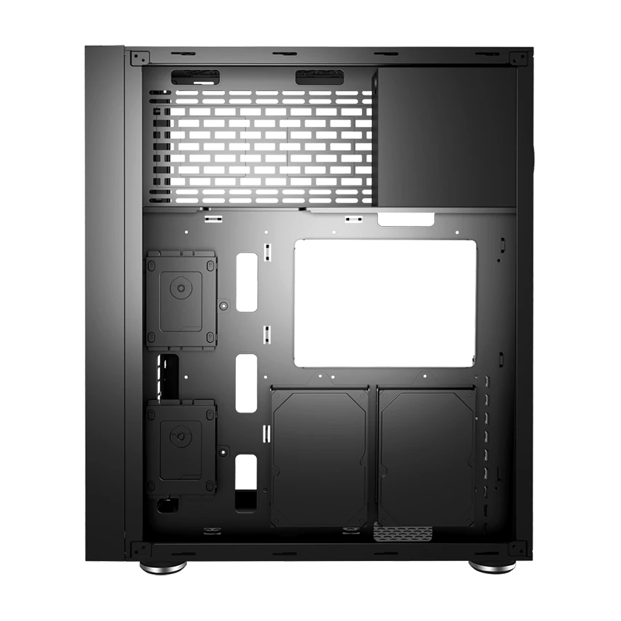 کیس GT-AV402-FB از مادربردهای قدرتمند E-ATX تا Mini-ITX پشتیبانی می‌کند و آزادی عمل چشمگیری می‌دهد. امکان نصب کارت گرافیک‌های بزرگ با طول ۳۸۴ میلی‌متر برای سیستم‌های گیمینگ پیشرفته کاملاً مناسب است. پشتیبانی از کولرهای پردازنده تا ارتفاع ۱۹۵ میلی‌متر نصب خنک‌کننده‌های حرفه‌ای را ساده می‌سازد. وجود ۹ اسلات توسعه افقی و ۲ اسلات عمودی قابلیت استفاده همزمان چند کارت را فراهم می‌کند.