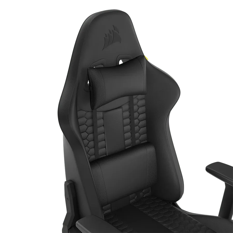 در روکش بیرونی صندلی گیمینگ کورسیر چرم Corsair TC100 RELAXED Leatherette Black بخشهای سوراخداری برای تنفس بیشتر تعبیه شده است تا شما را برای ساعتها نشستن، راحت و خنک نگه دارد و در عین حال حس تازگی خود را حفظ میکند.