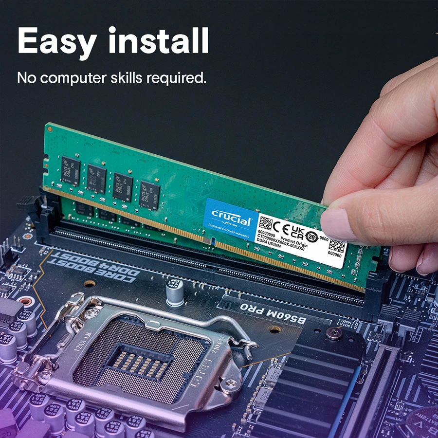 یکی از مزیتهای مهم رم دسکتاپ CRUCIAL مدل DDR4 32GB 3200 نصب سریع و آسان آن است. کاربران تنها با استفاده از یک پیچگوشتی و دفترچه راهنما میتوانند این قطعه را در چند دقیقه نصب کنند. این فرآیند بدون نیاز به مهارت تخصصی بوده و امکان ارتقای سیستمهای خانگی و اداری را بسیار ساده میکند. وجود ویدئوهای آموزشی سهدقیقهای شرکت CRUCIAL نیز به کاربران کمک میکند تا بدون مراجعه به تعمیرکار، ارتقا را شخصاً انجام دهند. این موضوع صرفهجویی در هزینه و زمان را برای مصرفکنندگان به همراه دارد.