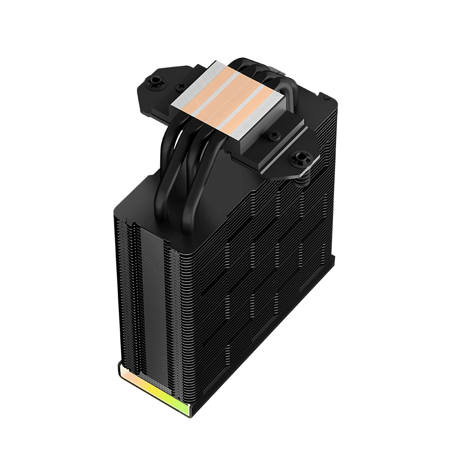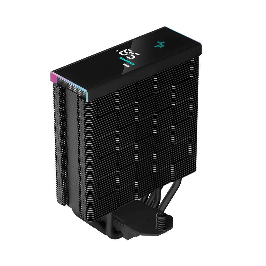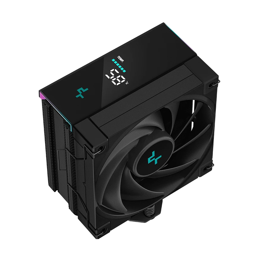 خنککننده DEEPCOOL AK400 DIGITAL با طراحی خاص و تمام مشکی، از چهار لوله حرارتی با تماس مستقیم و چیدمان برجکی بهره میبرد. این طراحی با فن FDB عملکرد خنککنندگی بینظیری ارائه میدهد و در عین حال صدای تولیدی بسیار کمی دارد.