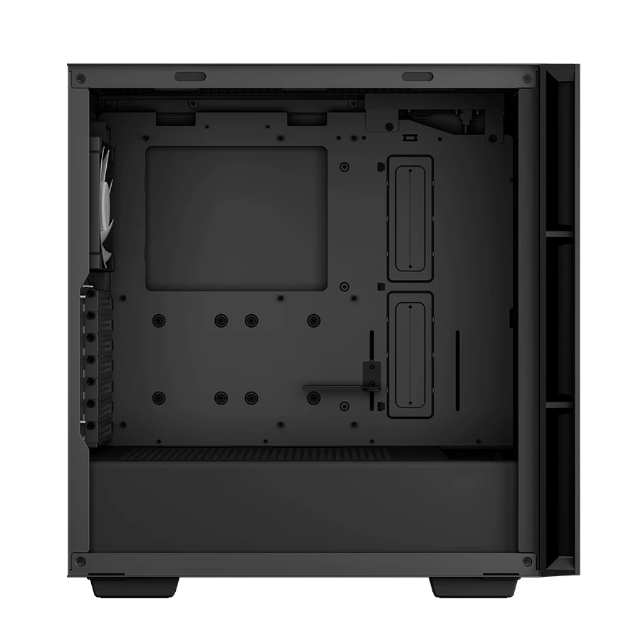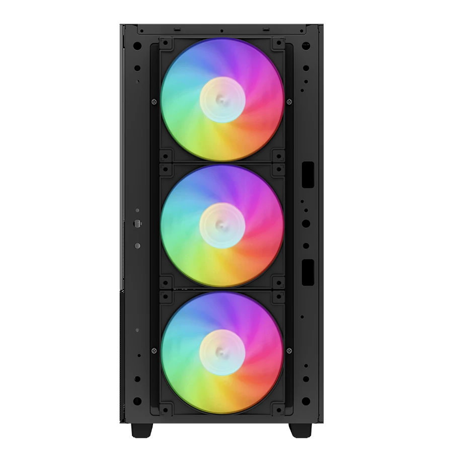 CH560 با فنهای ARGB 140 میلیمتری در جلو و یک فن 120 میلیمتری در عقب، نورپردازی جذابی را ارائه میدهد. این فنها به گونهای نصب شدهاند که حداکثر فضا برای کارتهای گرافیک بزرگ حفظ شود و عملکرد خنککنندگی نیز بهینه باشد.