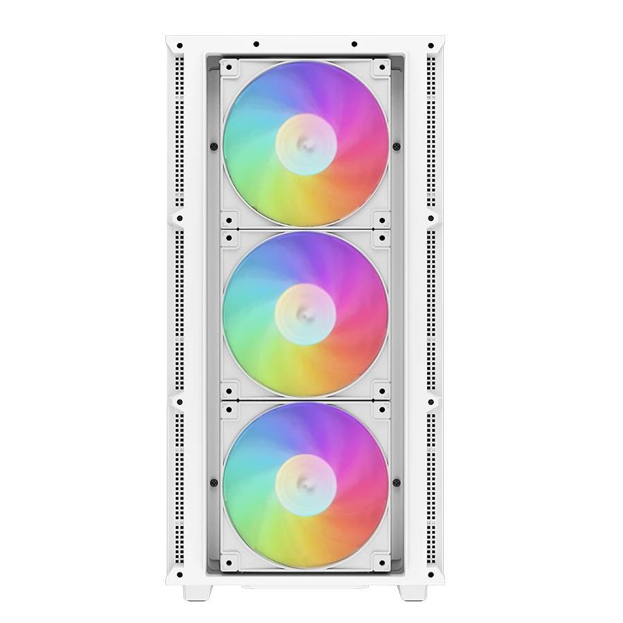 CH560 با فنهای ARGB 140 میلیمتری در جلو و یک فن 120 میلیمتری در عقب، نورپردازی جذابی را ارائه میدهد. این فنها به گونهای نصب شدهاند که حداکثر فضا برای کارتهای گرافیک بزرگ حفظ شود و عملکرد خنککنندگی نیز بهینه باشد.