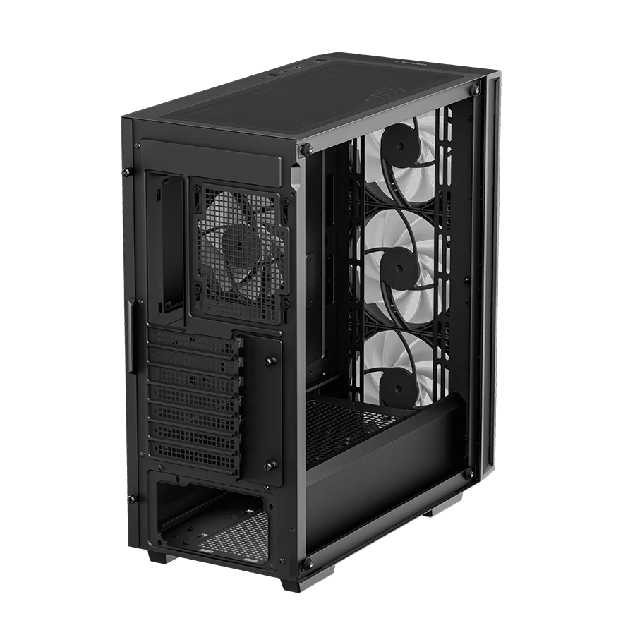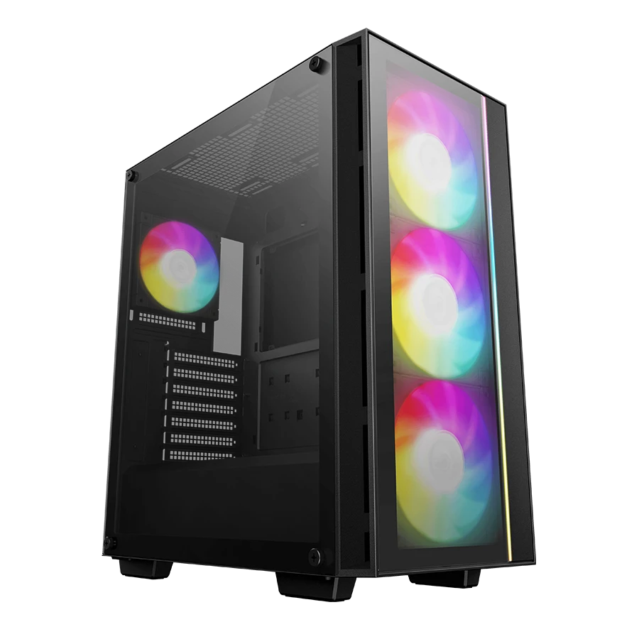 کیس گیمینگ دیپ کول مدل DeepCool MATREXX 55 V4 C با الهام از طراحی کلاسیک سری MATREXX 55 ساخته شده است. این مدل جدید با حفظ زبان طراحی قدیمی، از پنل شیشهای حرارتدیده در جلو و نوار LED چشمنواز در سمت راست بهره میبرد. سه فن ۱۴۰ میلیمتری ARGB در جلو و یک فن ۱۲۰ میلیمتری در پشت، ظاهر حرفهای و تهویهی بهینه را تضمین میکنند. این ترکیب از طراحی و نورپردازی، جلوهای گیمرپسند و مدرن به کیس میبخشد.