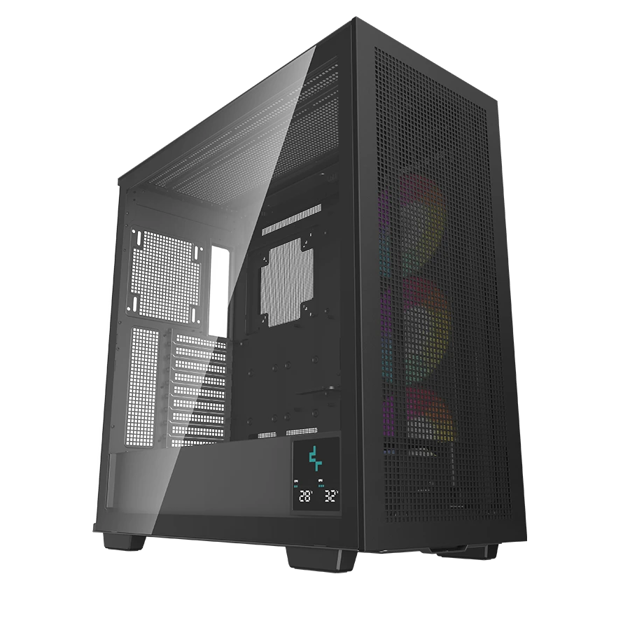 نمایشگر داخلی دوگانه به شما اجازه میدهد وضعیت پردازنده و کارت گرافیک را بهصورت زنده مشاهده کنید. با نصب یک اپلیکیشن ساده و اتصال به پورت USB 2.0، این قابلیت بهراحتی فعال میشود. در پنل جلویی نیز چهار پورت USB 3.0، یک پورت Type-C نسل دوم، ورودی صوتی و دکمه تنظیم ARGB تعبیه شده است.