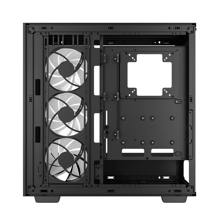 کیس گیمینگ دیپ کول مدل DeepCool MORPHEUS BLACK با طراحی جذاب، مفهوم ماژولار بودن را به سطح جدیدی رسانده است. کاربران میتوانند بهراحتی بین دو چیدمان تکمحفظهای و دومحفظهای جابهجا شوند. تمامی قطعات مورد نیاز برای این تغییر ساختار همراه کیس عرضه شدهاند. این ویژگی، انعطافی بینظیر برای مادربردهای ATX و حتی E-ATX فراهم میآورد. برای علاقهمندان به اسمبل شخصی، این انعطافپذیری مزیتی بزرگ محسوب میشود.