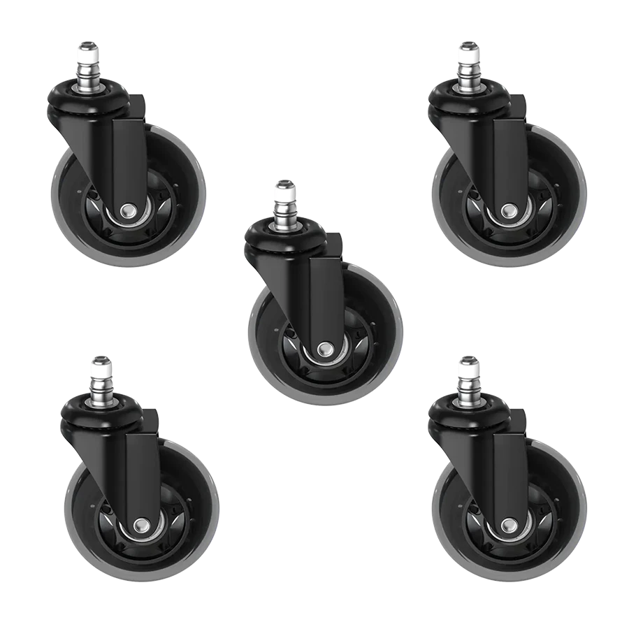 این مجموعه شامل 5 عدد چرخ از جنس پلیاورتان (Polyurethane) است. که مقاومت بالایی در برابر سایش دارد. متریال CA-RC75-N علاوه بر کاهش صدای حرکت، از ایجاد خط و خش روی سطوح حساس مانند پارکت و کاشی جلوگیری میکند.