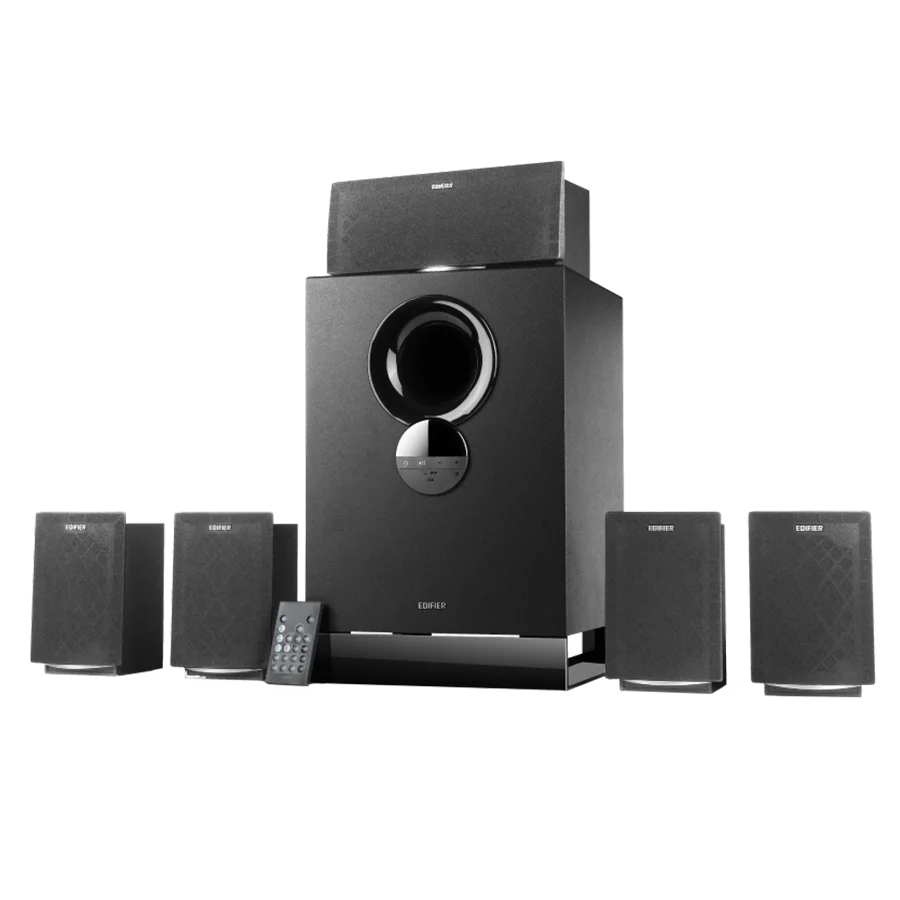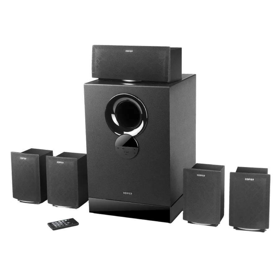اسپیکر ادیفایر Edifier R501BT Black یک سیستم صوتی چندرسانهای 5.1 قدرتمند و چندمنظوره است. این سیستم از آمپلیفایر Class-D با فناوری پردازش دیجیتال DSP بهره میبرد و توان خروجی کلی 93 وات RMS ارائه میدهد. بلندگوها شامل یک سابووفر 8 اینچی برای تولید باس قوی و پنج اسپیکر ماهوارهای 3 اینچی هستند که صدایی واضح و متعادل تولید میکنند.