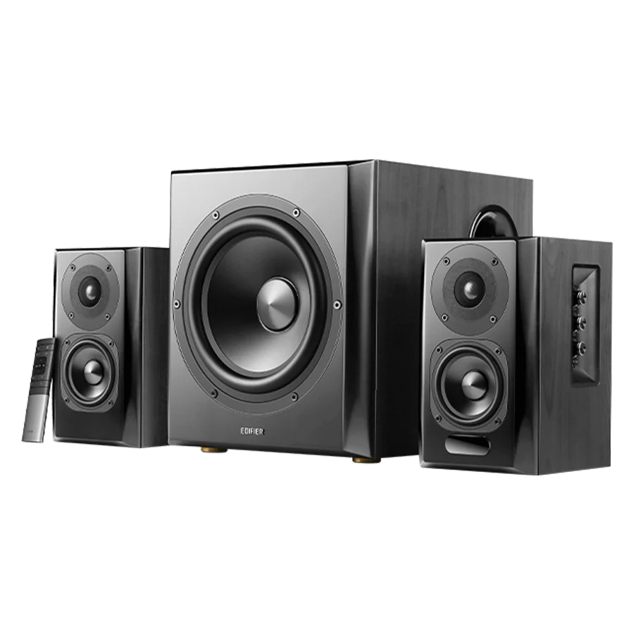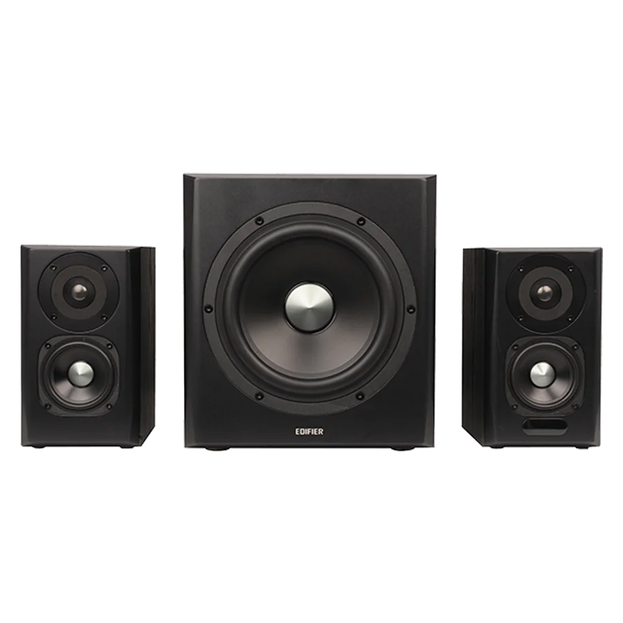اسپیکر Edifier S351DB Black ترکیبی از کیفیت صدای بالا و طراحی کلاسیک است. این سیستم شامل دو اسپیکر بوکشلف و یک سابووفر 8 اینچی است که توان خروجی کلی 150 وات RMS را ارائه میدهد. این سیستم با درایورهای میدرنج 3.5 اینچی، توییترهای ¾ اینچی تیتانیومی و سابووفر با دیافراگم پلیپروپیلن، صدایی شفاف و باس عمیق تولید میکند. همچنین پشتیبانی از سیگنالهای دیجیتال 24bit/48kHz، کیفیت صدای بینقص را تضمین میکند.