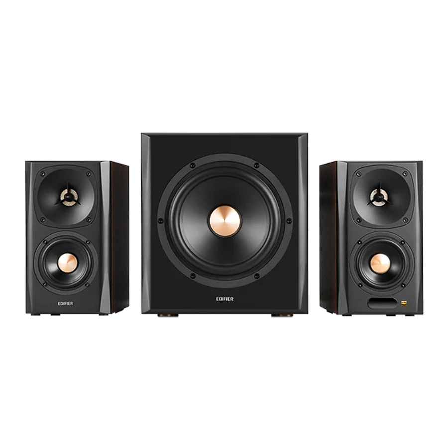 اسپیکر Edifier S360DB Wood یک سیستم صوتی 2.1 لوکس و قدرتمند است. این مدل با توان خروجی 155 وات RMS شامل 75 وات برای سابووفر، 30 وات برای میدرنج و 10 وات برای تریبل در هر کانال، صدایی فراگیر، قدرتمند و باکیفیت تولید میکند. طراحی چوبی کلاسیک آن علاوه بر زیبایی، به کاهش رزونانس صوتی کمک میکند.