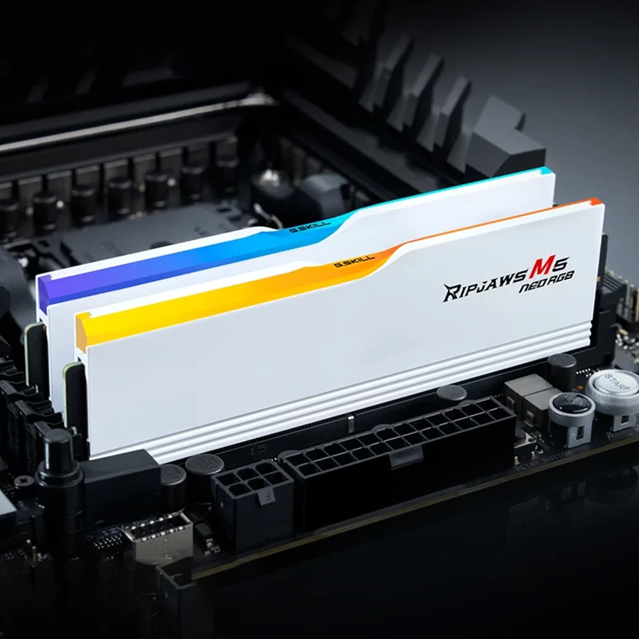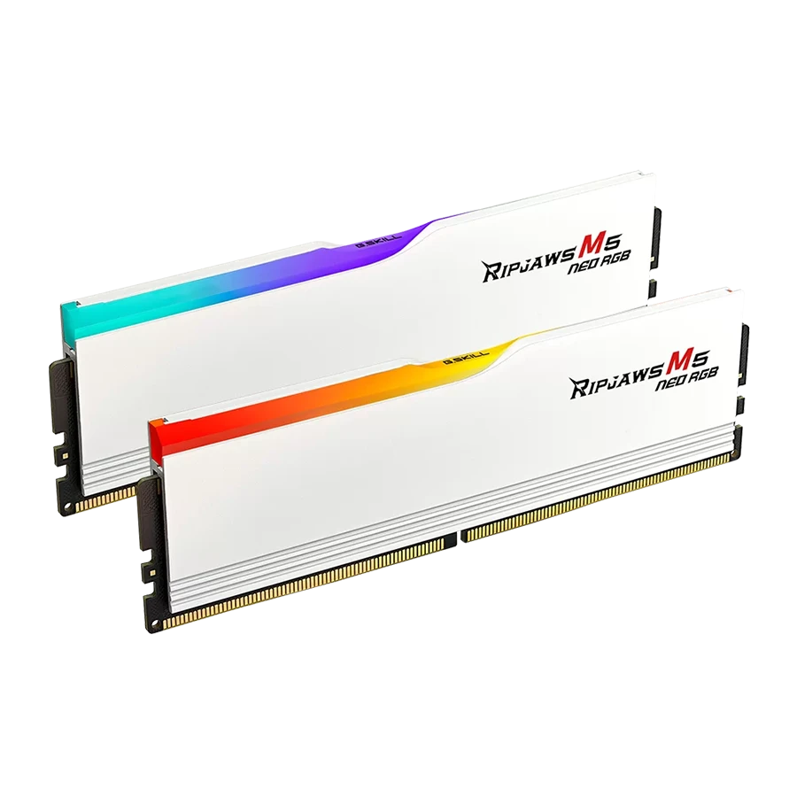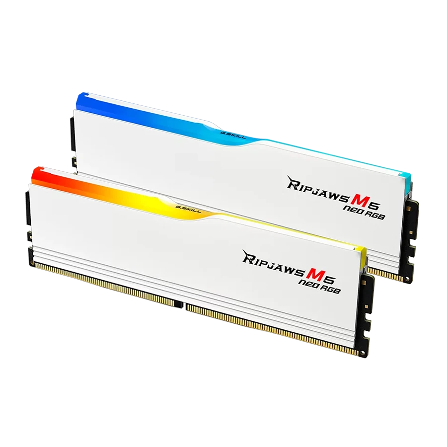 رم دسکتاپ دو کاناله G-Skill مدل Ripjaws M5 RGB Neo 32GB 6000 White یکی از حرفهایترین انتخابها برای گیمرها و کاربران علاقهمند به اورکلاک است. این ماژول با طراحی زیبا و خنککننده آلومینیومی سفید مات، علاوه بر کارایی بالا، جلوهای مدرن به سیستم شما میبخشد. استفاده از استاندارد DDR5 و پشتیبانی از پروفایل AMD EXPO، عملکردی فوقالعاده در پلتفرمهای AM5 ارائه میدهد.