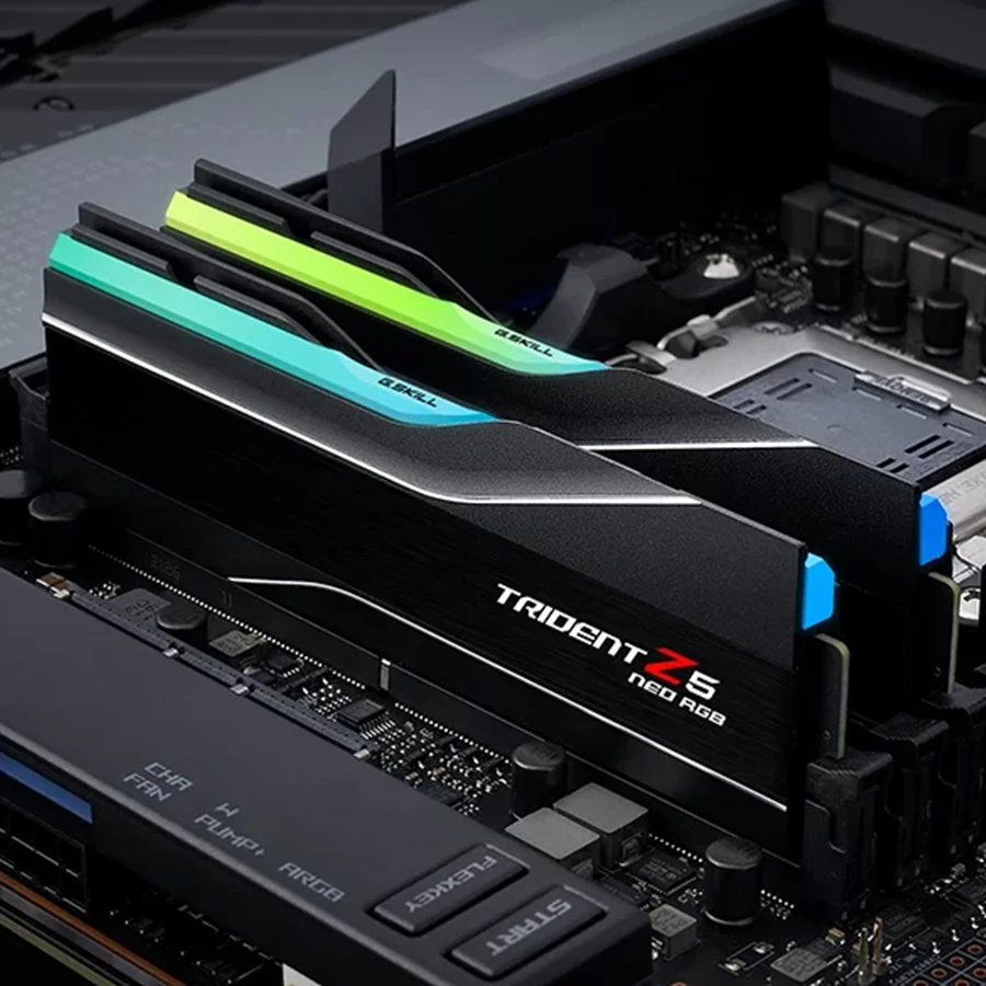 رم دو کاناله G-Skill مدل Trident Z5 Neo RGB 32GB 6000 Black CL30 یکی از بهترین انتخابها برای سیستمهای حرفهای است. این مدل بهطور ویژه برای پلتفرمهای DDR5 سازگار با پردازندههای AMD طراحی شده و از فناوری AMD EXPO پشتیبانی میکند. همین ویژگی امکان اورکلاک سریع و پایدار را برای کاربران فراهم میسازد. استفاده از این رم در سیستمهای قدرتمند، سرعت اجرای برنامهها و بازیهای سنگین را به شکل چشمگیری افزایش میدهد.