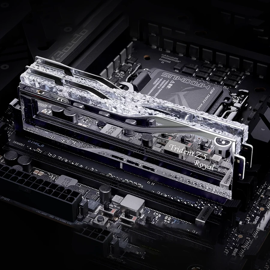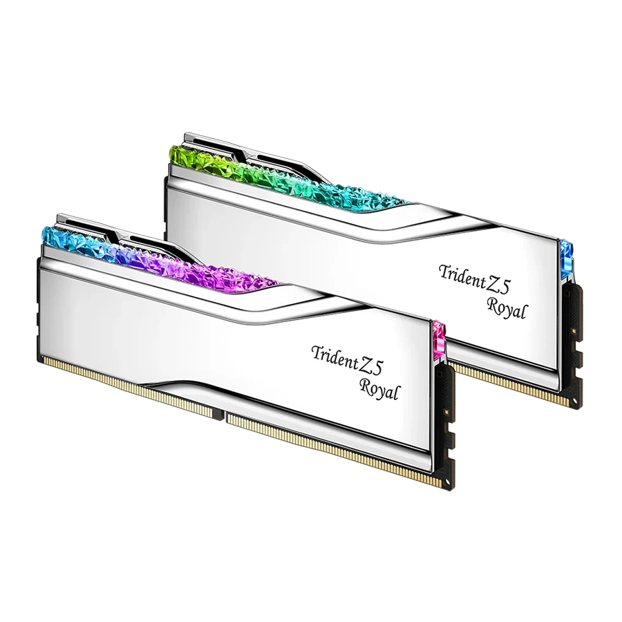 رم دو کاناله G-Skill مدل Trident Z5 Royal RGB 32GB 6400 Silver CL32 با طراحی لوکس و خاص خود شناخته میشود. استفاده از نوار نور کریستالی باعث شکست و پخش نور RGB بهصورت چشمنواز میگردد. این طراحی همانند یک جواهر درون کیس رایانه شما جلوهای خیرهکننده ایجاد خواهد کرد. ظاهر براق و آینهای آن با رنگ نقره ای و جزئیات دقیق، تجربهای کاملاً متمایز را رقم میزند. ترکیب زیبایی و فناوری، این محصول را به انتخابی ویژه برای کاربران حرفهای بدل کرده است.