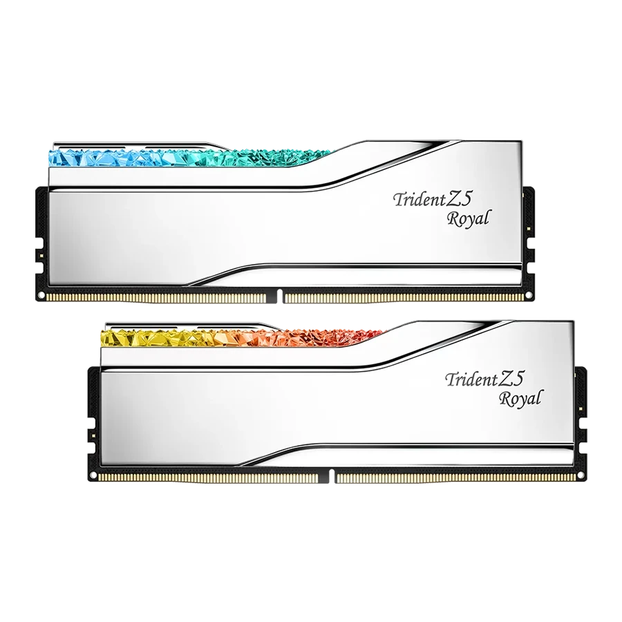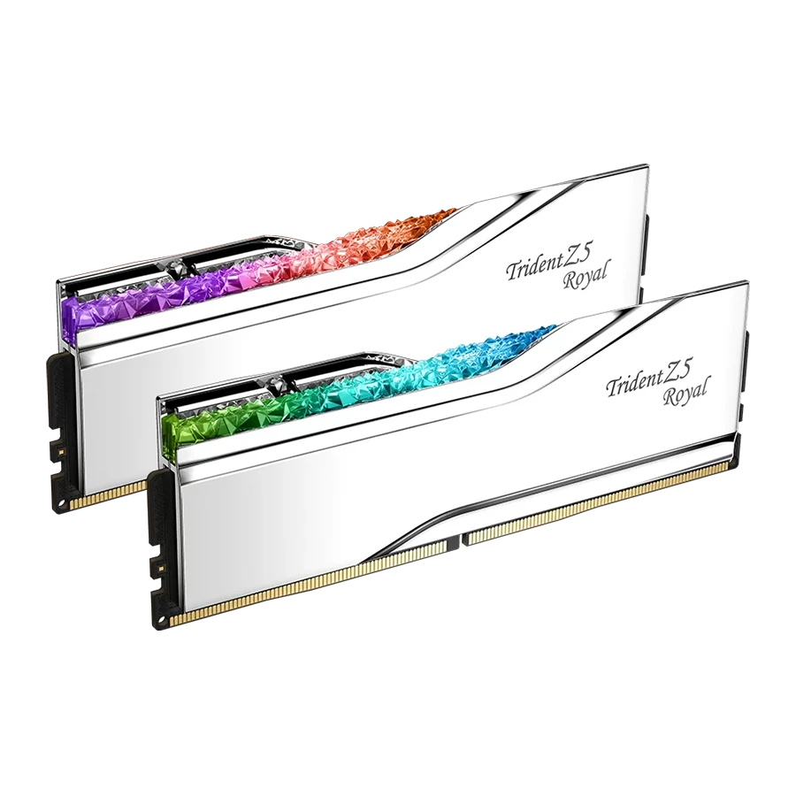 رم دو کاناله G-Skill مدل Trident Z5 Royal RGB 64GB 6400 Silver CL32 با طراحی لوکس و خاص خود شناخته میشود. استفاده از نوار نور کریستالی باعث شکست و پخش نور RGB بهصورت چشمنواز میگردد. این طراحی همانند یک جواهر درون کیس رایانه شما جلوهای خیرهکننده ایجاد خواهد کرد. ظاهر براق و آینهای آن با رنگ نقره ای و جزئیات دقیق، تجربهای کاملاً متمایز را رقم میزند. ترکیب زیبایی و فناوری، این محصول را به انتخابی ویژه برای کاربران حرفهای بدل کرده است.