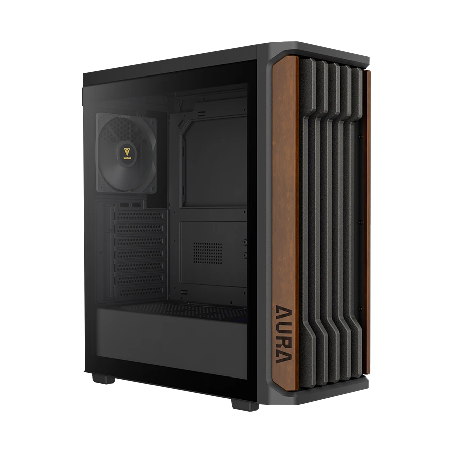فضای داخلی کیس گیمینگ AURA GC11 WOOD برای نصب قطعات متنوع کاملاً بهینه‌سازی شده است. این کیس از مادربردهای Mini-ITX، Micro-ATX و ATX به‌طور کامل پشتیبانی می‌کند. امکان نصب کارت گرافیک تا طول 300 میلی‌متر، آزادی عمل بالایی برای ارتقای سیستم ایجاد می‌کند. طراحی شاسی و کاور منبع تغذیه، مدیریت کابل‌ها را ساده‌تر و منظم‌تر می‌سازد.