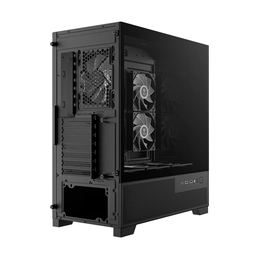 فضای داخلی این کیس برای پشتیبانی از مادربردهای ATX، Micro-ATX و Mini-ITX طراحی شده است. امکان نصب کارت گرافیک تا طول 410 میلیمتر، آزادی عمل بالایی برای انتخاب سختافزار ایجاد میکند. کاور منبع تغذیه و عمق مناسب بدنه، مدیریت کابلها را مرتبتر و جریان هوا را بهینهتر میسازد. این ساختار، کیس را برای سیستمهای گیمینگ قدرتمند و حرفهای کاملاً آماده میکند.