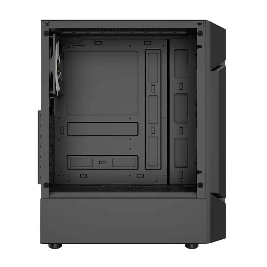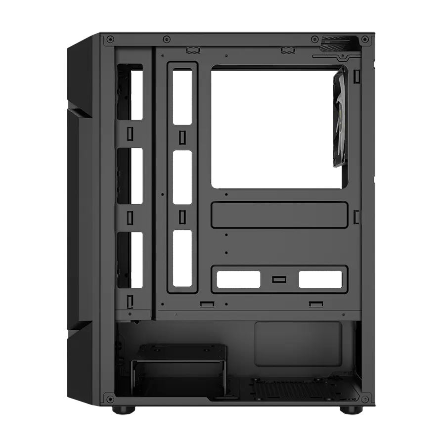 یک پنل شیشهای تمپر شده (panoramic tempered glass) در سمت چپ کیس تعبیه شده تا نمای درونی سیستم را بهصورت زیبا نمایش دهد. طراحی نصب این پنل بدون نیاز به ابزار انجام میشود.