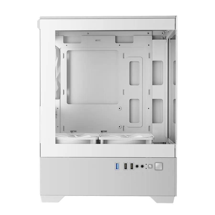 کیس گیمینگ AURA GC9M WH از GAMDIAS یک کیس Micro-Tower جمعوجور و مدرن است که با جلوه ژرف نورپردازی ARGB و نمای شیشهای پانورامیک، ترکیبی از زیبایی و عملکرد را در ابعاد جمعوجور ارائه میدهد. طراحی فشرده آن باعث میشود برای سیستمهایی با فضای محدود ایدهآل باشد، بدون آنکه امکانات حرفهای یک کیس Mid-Tower را فدا کند. این مدل همچنین با ساختار فنمحور و امکان نمایش جلوه نورپردازی داخل کیس، انتخابی جذاب برای گیمرها و کاربران خلاق خواهد بود.