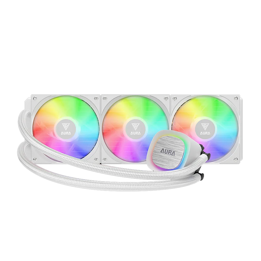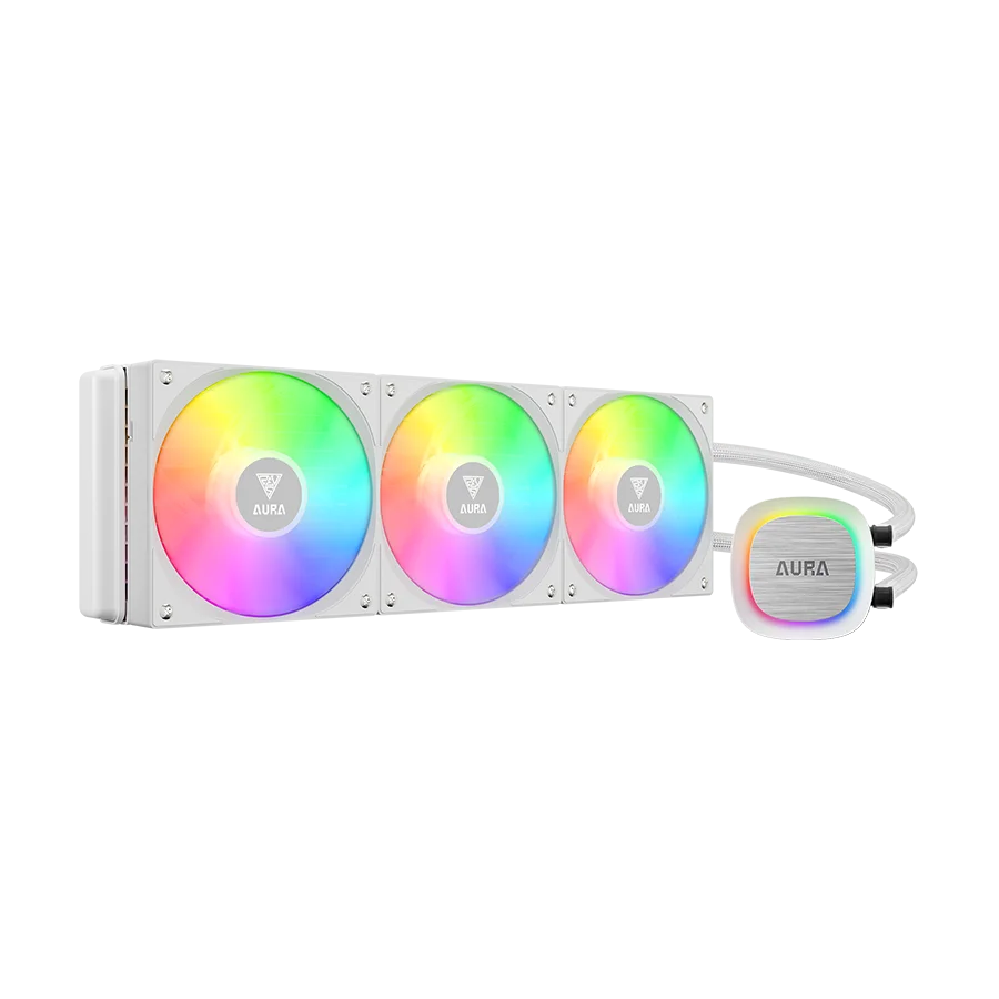 خنککننده مایع پردازنده گیم دیاس GAMDIAS AURA GL360 V2 White با سیستم Liquid Cooling طراحی شده است. این محصول حرارت پردازنده را به شکل مؤثر دفع میکند. رادیاتور بزرگ 27 × 120 × 396 میلیمتر و سه فن 120 میلیمتری خنککنندگی پایدار و جریان هوای قوی فراهم میکنند. صفحه پایه مسی انتقال حرارت سریع و کارآمدی ارائه میدهد.
