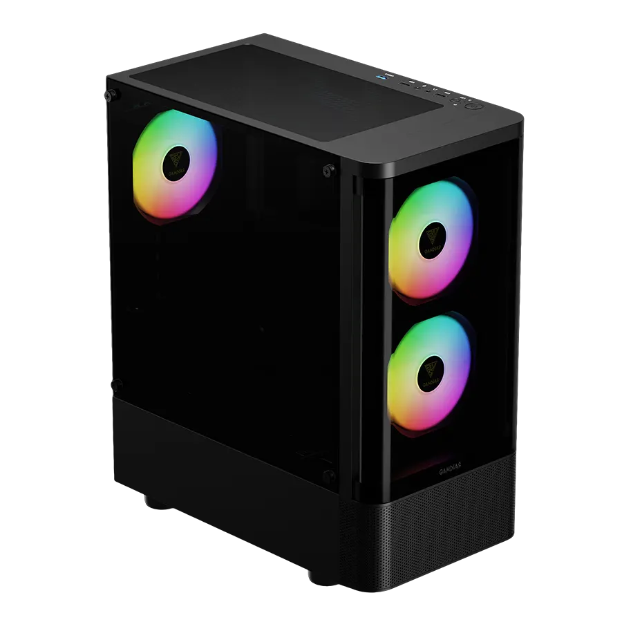 کیس گیمینگ Gamdias TALOS E3 CG با ترکیب پنل جلویی منحنی شیشهای، نورپردازی ARGB و سه فن از پیش نصبشده، تعادل خوبی میان زیبایی و کارایی ایجاد میکند. این طراحی باعث شده ضمن حفظ فضای داخلی انعطافپذیر، تهویهای مطمئن و تجربهای مدرن برای گیمرها فراهم شود.