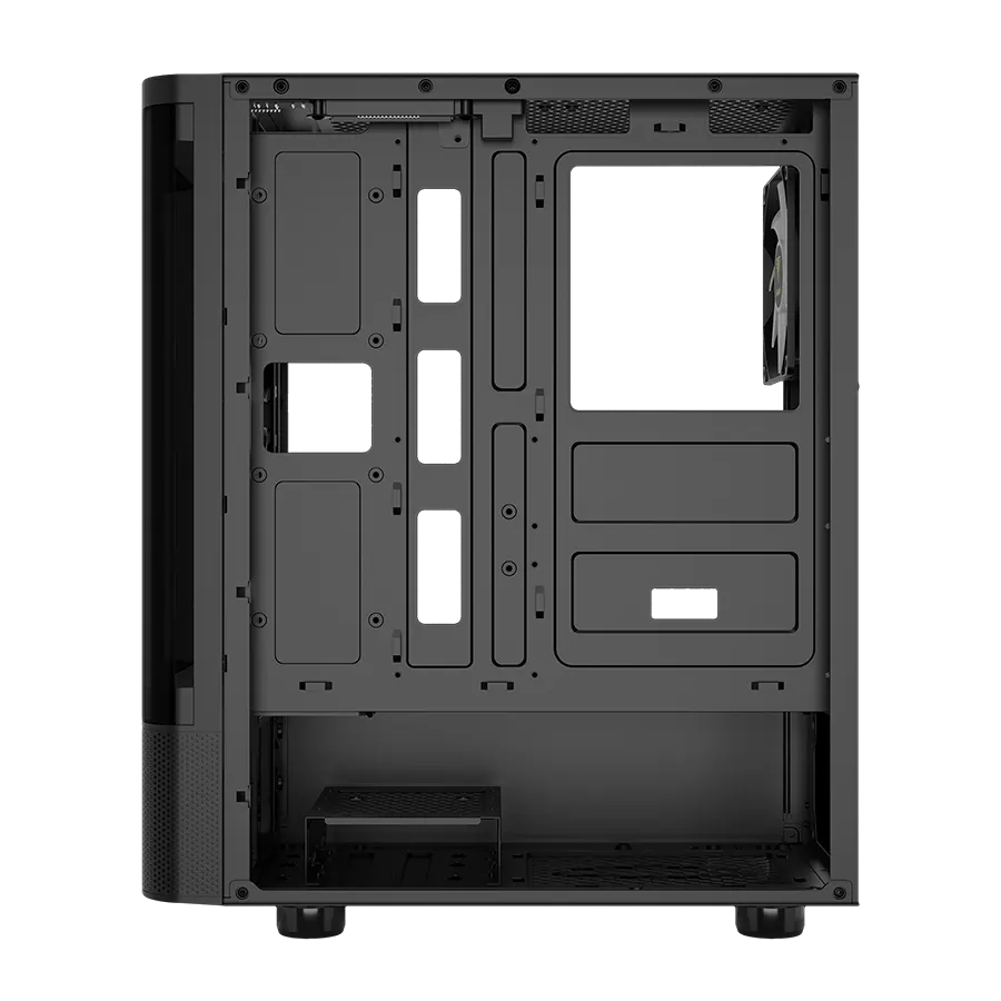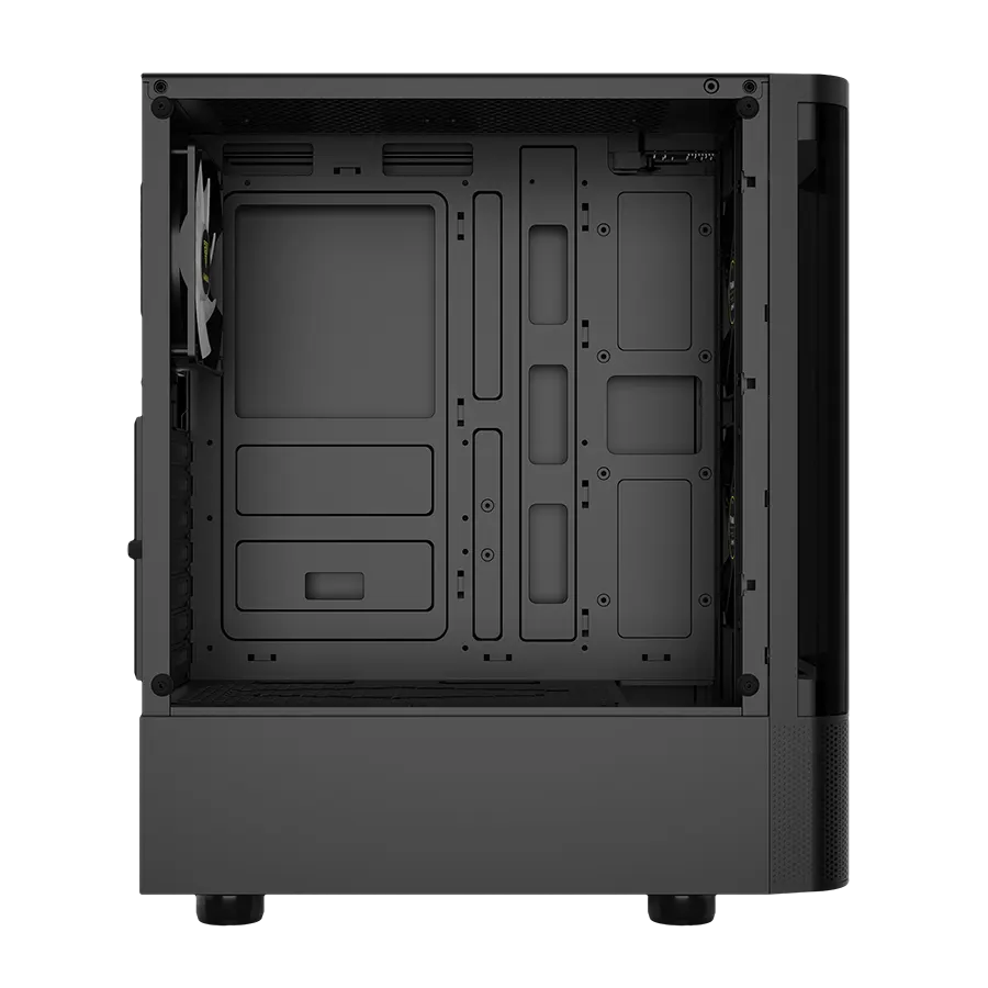 سه عدد فن ARGB 120mm به صورت پیشنصب در جلو و عقب تعبیه شدهاند تا هوا به خوبی جریان داشته باشد. پنل مشدار جلوی کیس کمک میکند تا هوای تازه وارد شود و عبور حرارت آسانتر باشد.