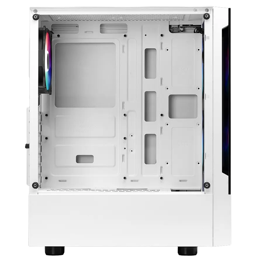 سه عدد فن ۱۲۰ میلیمتری ARGB بهصورت پیشنصب در بخش جلویی تعبیه شدهاند که علاوه بر تامین جریان هوای مؤثر، جلوه نورپردازی نرم و هماهنگ را ارائه میدهند.