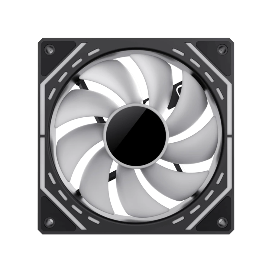 فن FN12A-S2I-R مجهز به نورپردازی ARGB با حلقه نور و طراحی آیینه‌ای در اطراف بدنه مشکی رنگ خود است. مجموع ۲۴ عدد LED، شامل ۸ عدد در مرکز و ۱۶ عدد در حلقه بیرونی، جلوه‌ای چشمگیر و قابل تنظیم ایجاد می‌کنند. این نورها از طریق اتصال ۳ پین Aura به مادربرد، به راحتی با دیگر قطعات همگام‌سازی می‌شوند.
