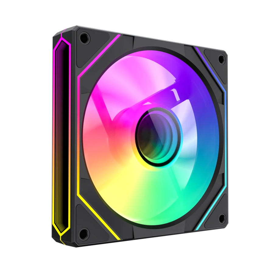 این فن با بهرهگیری از ۲۴ عدد LED در مرکز و حلقه بیرونی، جلوههای نوری متنوعی ارائه میدهد. کاربران میتوانند از طریق کنترلر ARGB یا قابلیت AURA Sync، نورها را شخصیسازی کنند. ترکیب نور داخلی و خارجی، ظاهری مدرن و خیرهکننده برای سیستم گیمینگ ایجاد میکند.